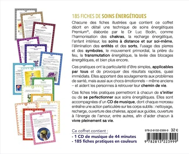 Dans ce coffret de 185 fiches thématiques, illustrées de photos, toutes les techniques utilisées par Luc Bodin pendant plus de vingt ans sont condensées. A la fois de manière approfondies et synthétiques, elles proposent une approche concrète visant à traiter tant les maux physiques que psychologiques.