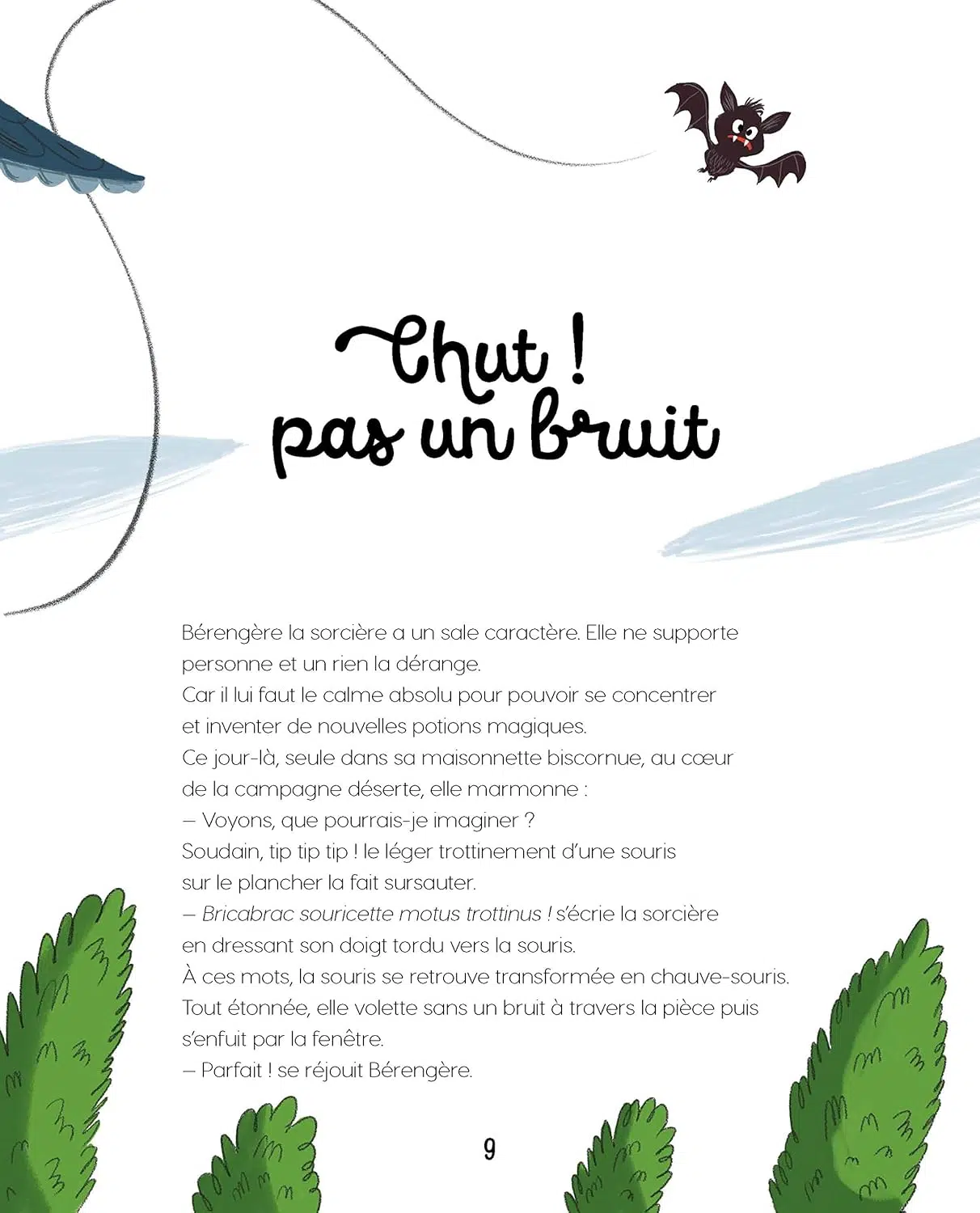 Sept histoires à lire chaque soir, du lundi au dimanche, pour s'amuser et découvrir des sorcières originales : Bérangère la sorcière qui a un sale caractère, la potion magique de la sorcière de la savane, Lizbelle la sorcière qui lit le futur dans sa boule de cristal, le bal des sorcières, une compétition de magie, Titine la voiture qui fume et tremblote de la sorcière Ernestine, Lily l'apprentie sorcière.