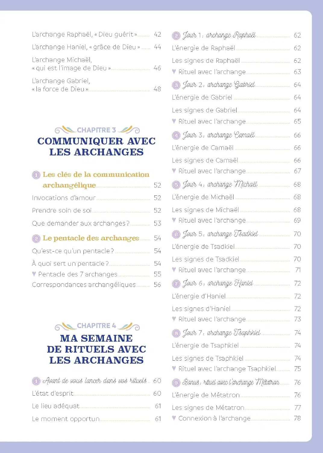 Voyez ce livre comme votre nouveau compagnon de route, votre ami. Laissez-vous porter par son énergie et, surtout, accueillez et acceptez tout ce qu’il vous transmettra. Son enseignement vous transportera dans la vibration incroyable des archanges qui pourra avoir une grande importance dans votre cœur ainsi que sur votre chemin de vie.