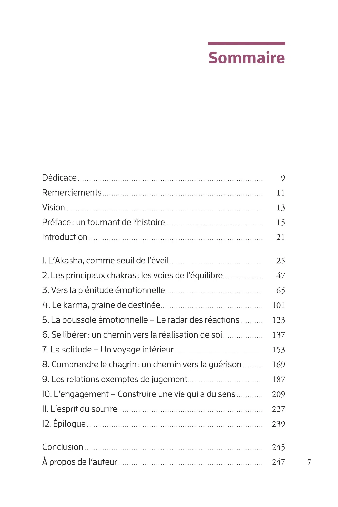 Pour ce faire, il aborde les thèmes essentiels de la solitude, de nos valeurs et de nos motivations. Il analyse également certains traits de caractère et émotions, tout en soulignant l’importance du sourire et du non-jugement.