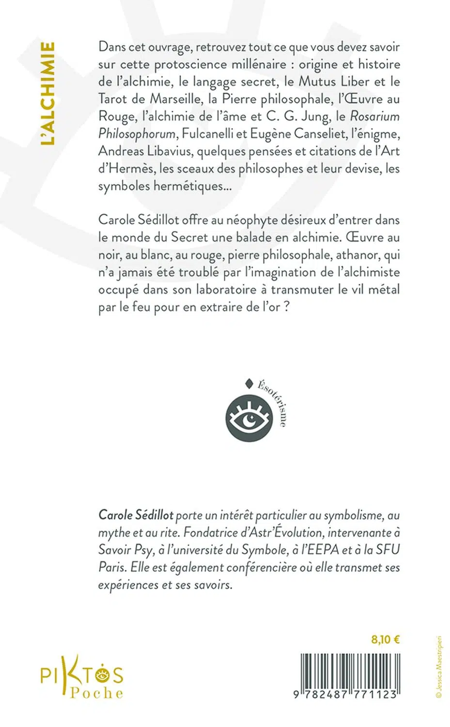 Carole Sédillot offre au néophyte désireux d’entrer dans le monde du Secret une balade en alchimie. Œuvre au noir, au blanc, au rouge, pierre philosophale, athanor, qui n’a jamais été troublé par l’imagination de l’alchimiste occupé dans son laboratoire à transmuter le vil métal par le feu pour en extraire de l’or ?