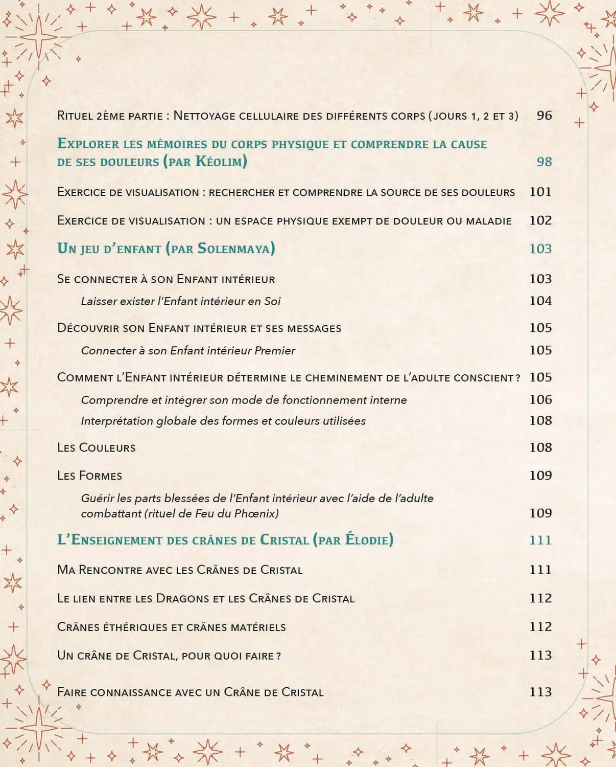 À travers des visualisations, des auto-soins et des expérimentations concrètes, les Dragons vous invitent à vous reconnecter avec leurs énergies, et vous amènent à reprendre pleinement contact avec vos capacités créatrices, dans votre quotidien.
