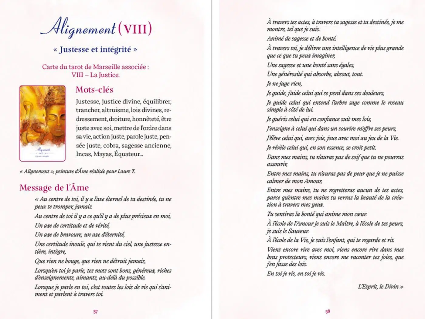 Chacune des 59 cartes magnifiquement illustrées de cet oracle offre un véritable soin pour l’Âme et saura vous apporter un éclairage précieux sur votre situation ou votre évolution. Grâce à elles et au livret qui les accompagne, chaque tirage devient une rencontre avec l'infini de votre Être et une façon de progresser sereinement sur le chemin de votre destinée.