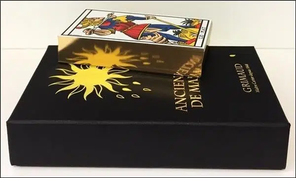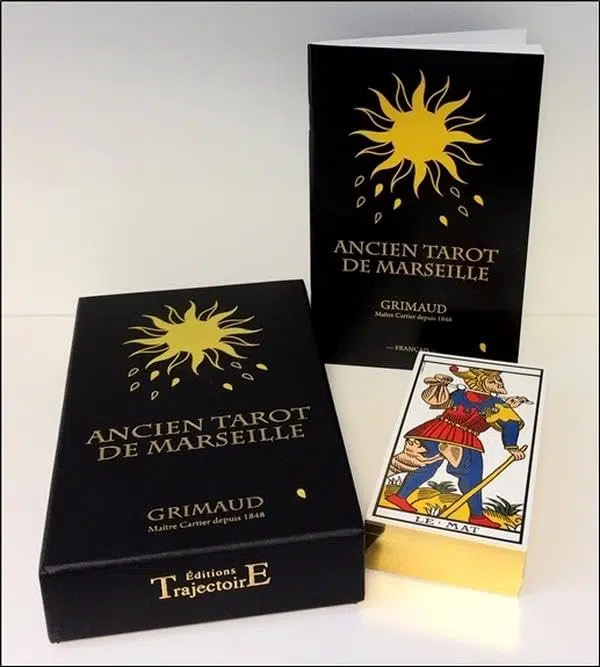 Découvrez le coffret luxe du célèbre jeu Ancien Tarot de Marseille. Les cartes sont imprimées sur un carton de haute qualité spécialement sélectionné par Grimaud avec un vernis leur conférant résistance, brillance et excellente glisse. De l'or véritable habille les tranches des cartes grâce à une finition de dorure à chaud, pour une expérience d'utilisation et un design unique. Le jeu est accompagné d'un livret prodiguant des conseils méthodologiques pour la consultation et l'interprétation des cartes de l'Ancien Tarot de Marseille.