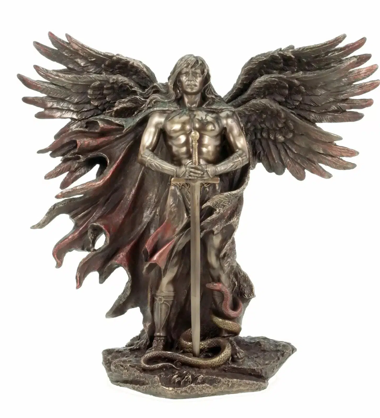 Statue de 26cm en résine et poudre de bronze de l'Archange Métatron tenant son épée.