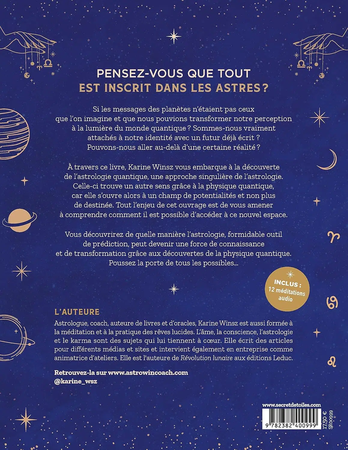 À travers ce livre, Karine Winsz vous embarque à la découverte de l’astrologie quantique, une approche singulière de l’astrologie. Celle-ci trouve un autre sens grâce à la physique quantique, car elle s’ouvre alors à un champ de potentialités et non plus de destinée. Tout l’enjeu de cet ouvrage est de vous amener à comprendre comment il est possible d’accéder à ce nouvel espace.