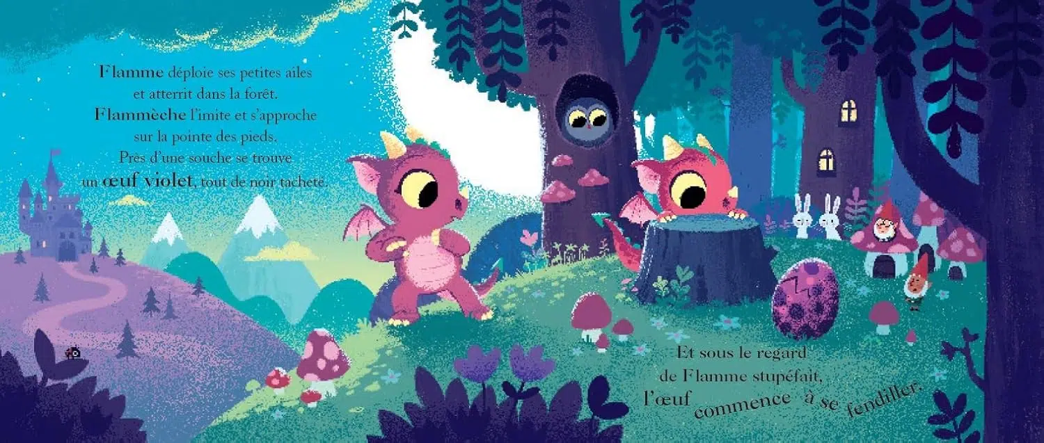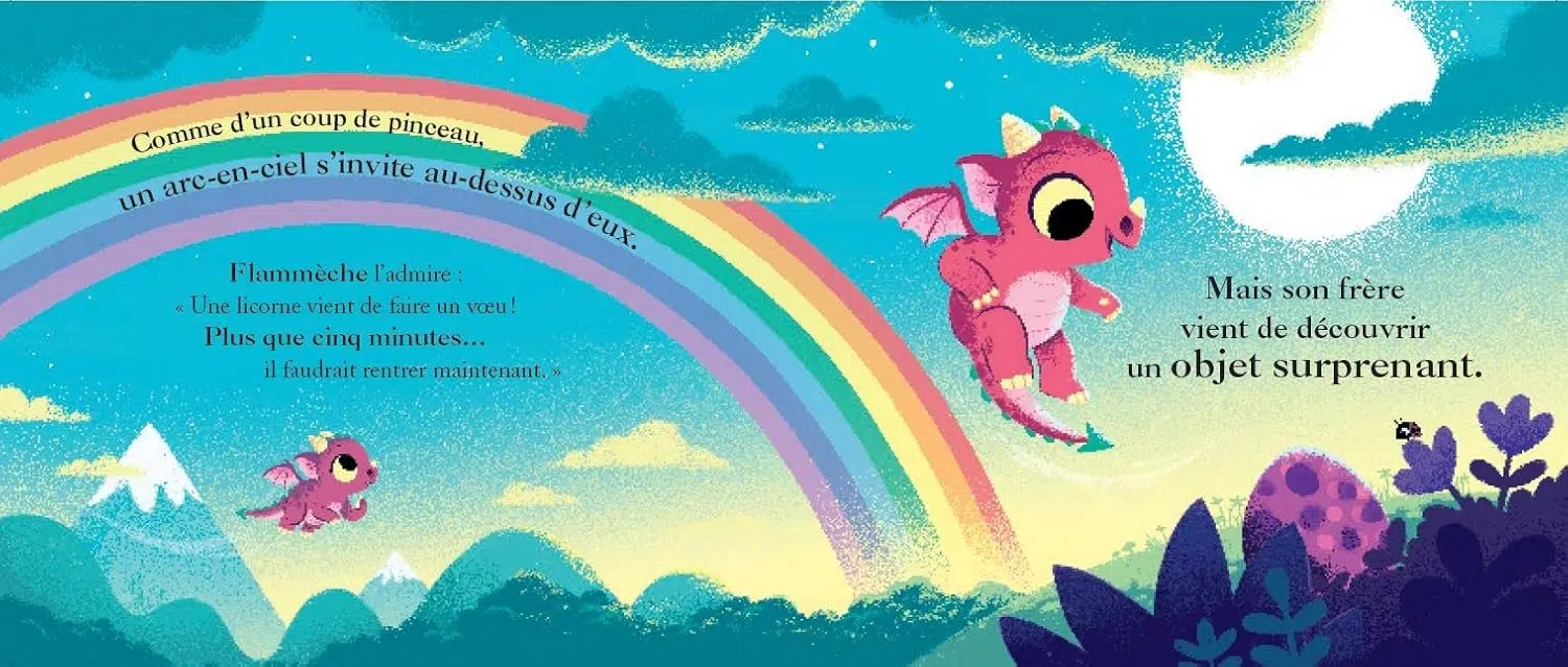 Dix, neuf, huit minutes avant d'aller au lit ! Ce soir, Flamme et Flammèche n'ont pas l'intention d'aller se coucher... Nos deux petits dragons comptent bien sillonner le ciel en quête d'aventure et profiter de chaque minute avant de s'endormir !