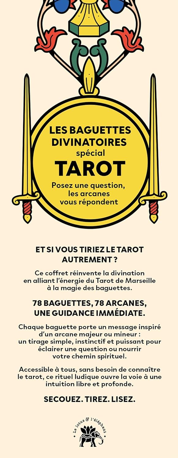 Ce coffret réinvente la divination en alliant l’énergie du Tarot de Marseille à la magie des baguettes.