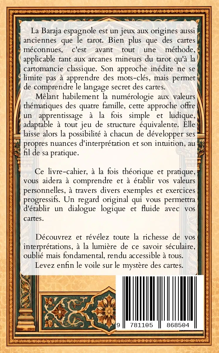 Ce livre ne contient PAS de jeu de cartes, car il est applicable avec n'importe quel jeu de tarot traditionnel (arcanes mineurs) ou jeu de cartes classiques. Les puristes pourront toutefois trouver très simplement des jeux de Baraja espagnole à leur goût sur internet.