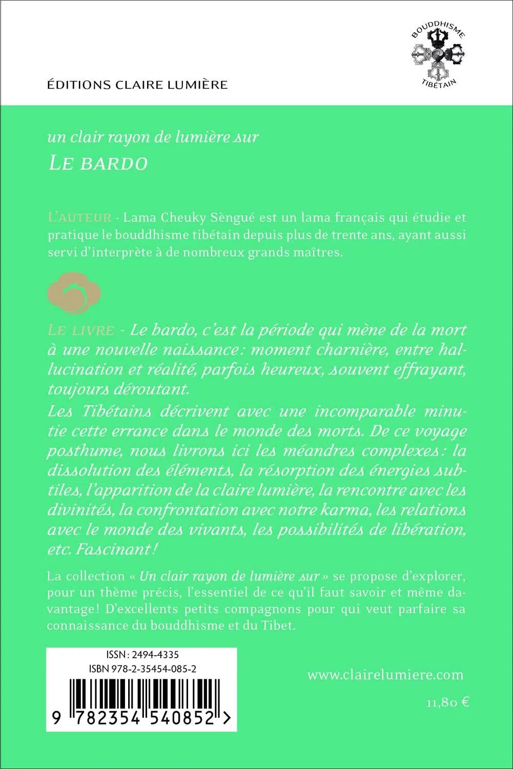 Les Tibétains décrivent avec une incomparable minutie cette errance dans le monde des morts. De ce voyage posthume, nous livrons ici les méandres complexes : la dissolution des éléments, la résorption des énergies, l’apparition de la claire lumière, la rencontre avec les divinités, la confrontation avec notre karma, les relations avec le monde des vivants, les possibilités de libération, etc. Fascinant !