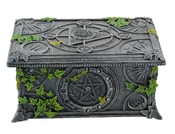 Utilisé depuis l'antiquité mésopotamienne puis repris par les pythagoricien de la Grèce antique, le Pentagramme (étoile à cinq branches tracée d'un seul trait) symbolisme l'équilibre des éléments, chacune de ses branches incarnant l'eau, le feu, la terre, l'air et l'esprit. Dans sa version Pentacle (le même symbole inscrit dans un cercle), il représente l'unité et l'infini, la protection par les éléments et l'énergie magique "scellée", ainsi que la maîtrise du praticien sur ces éléments. Souvent craint (à tort), c'est aujourd'hui une représentation très répandue du microcosme et du macrocosme, ainsi que du lien entre l'humain, la nature et le divin.