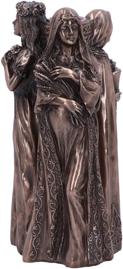 Porte bougie en résine effet bronze, avec les trois visages de la Déesse : - la jeune fille (maiden) ; - la mère (mother) ; - et l'ancienne (crone).
