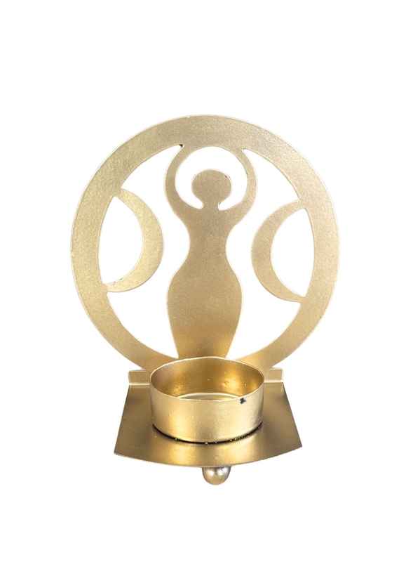 Bougeoir en métal doré pour bougie chauffe-plat.