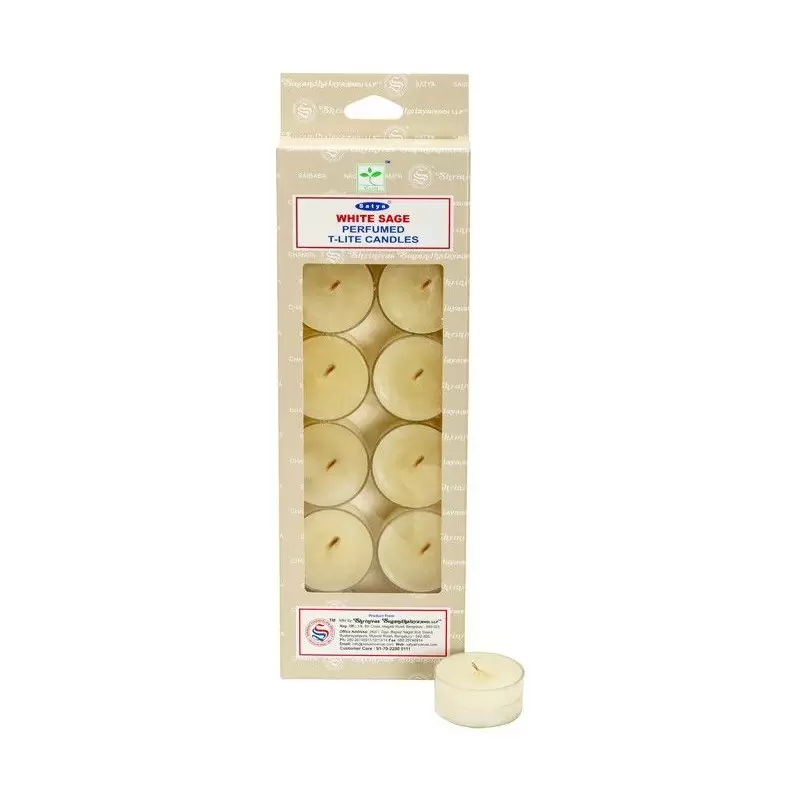 Ces bougies chauffe-plat sont parfumées avec la senteur "Sauge Blanche" de la marque indienne Satya.