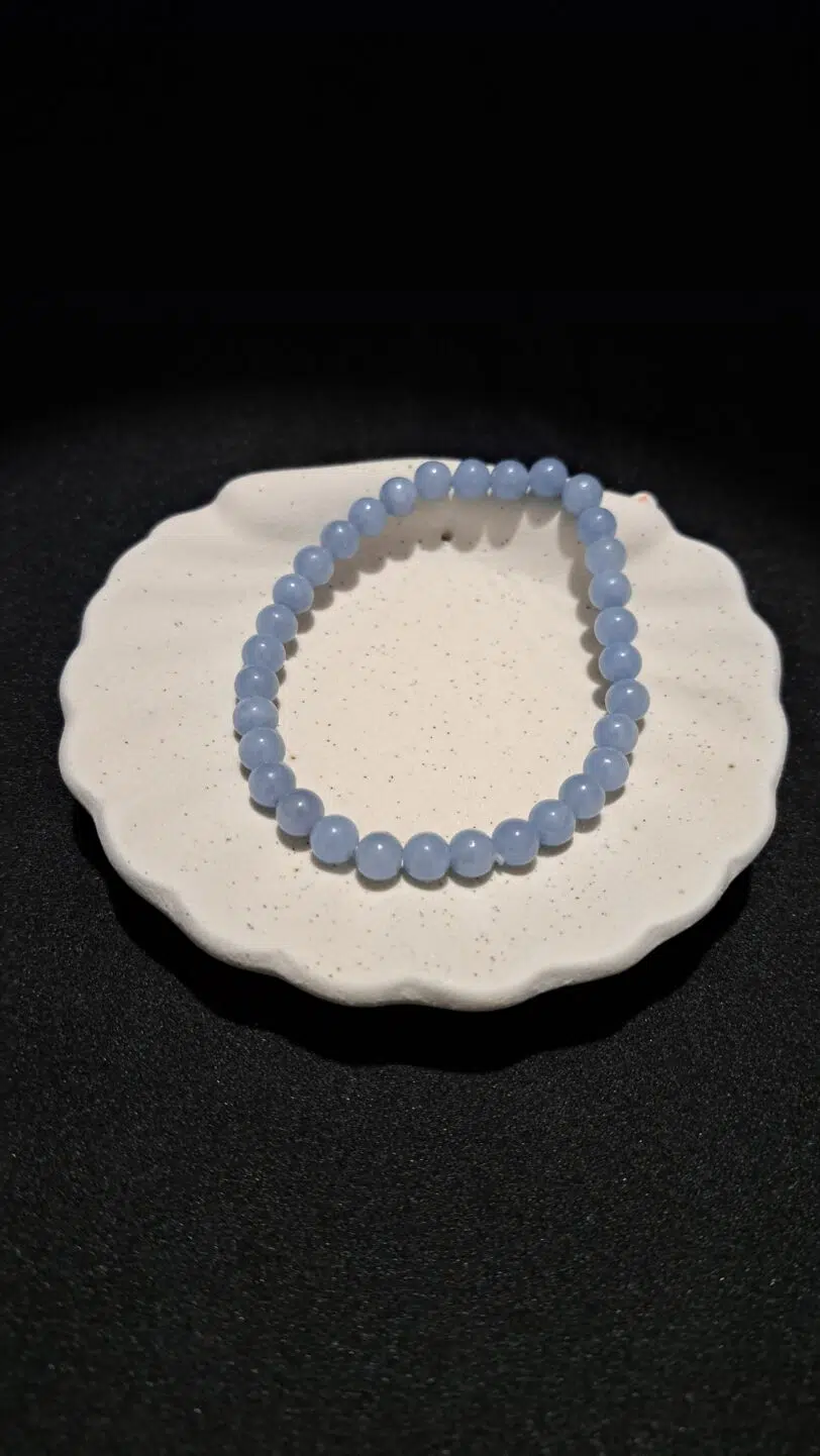 Par sa douce couleur bleu ciel, l'Angélite (aussi appelée Célestite) est associée au chakra de la gorge, qu'elle ouvre en douceur et harmonise. Mais sa principale vertu est celle de nous aider à reconnaître et à ressentir l'amour dans tout ce qui vit, apportant une profonde paix intérieure. Relie aussi naturellement à la lumière et à la douceur des plans célestes.