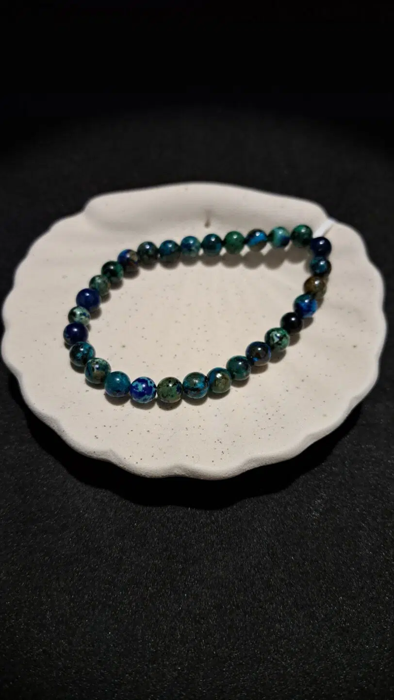 Pierre extrêmement psychique et médiumnique, l'Azurite est la pierre de l'intuition et du 'channeling'. Son bleu indigo (que l'on retrouve dans le Lapis-lazuli) purifie et stimule le troisième œil, facilitant les voyages extra-corporels. Élève la conscience sur un plan supérieur et confère un contrôle plus grand sur le développement spirituel, tout en élargissant l'esprit. Liée au cerveau, stimule la mémoire et confère une compréhension claire et de nouvelles perspectives, en laissant aller les blocages mentaux (phobies, etc.) de longue date.