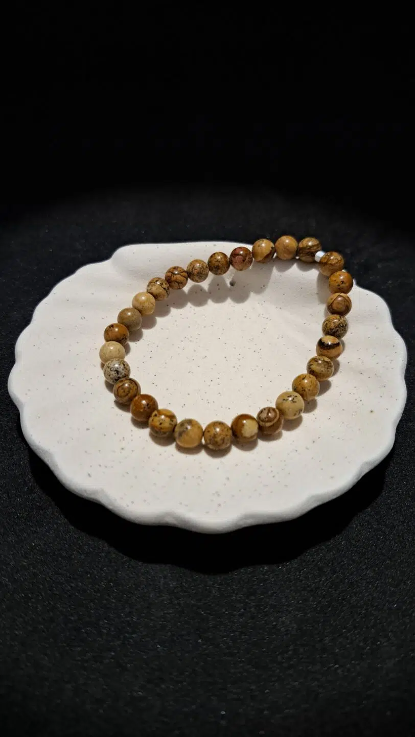 Les improbables motifs aux tonalités beiges du Jaspe 'paysage' invitent à la contemplation et à la méditation. L'état profond qu'il induit permet de libérer des souffrances intérieures et de se laisser aller. Apportant la paix et le repos, enracine dans l'incarnation et l'instant présent. Apportant une solidité et stabilité inébranlable, calmant le mental et le stress de la vie.