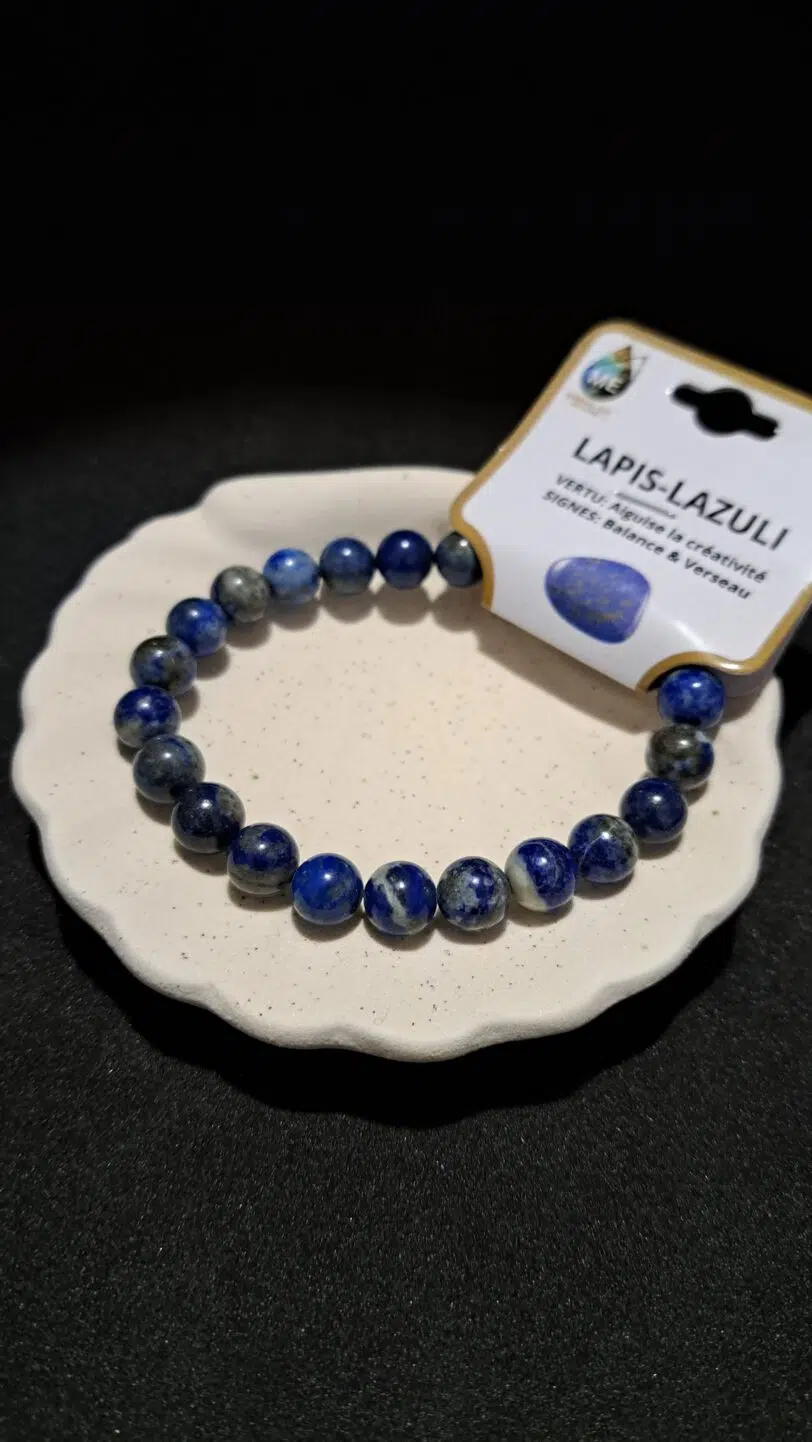L'aspect du Lapis-lazuli rappelle un ciel étoilé, donnant à l'âme la sensation d'être à l'abri dans le cosmos. Parfois associée au chakra de la gorge, son lien est avant tout avec le troisième œil (par sa couleur indigo). Stimule l'intuition et la vision interne, permettant d'identifier le sens caché des choses ainsi que les forces agissant derrière. Relie aux esprits gardiens et offre la joie face aux miracles de la vie.