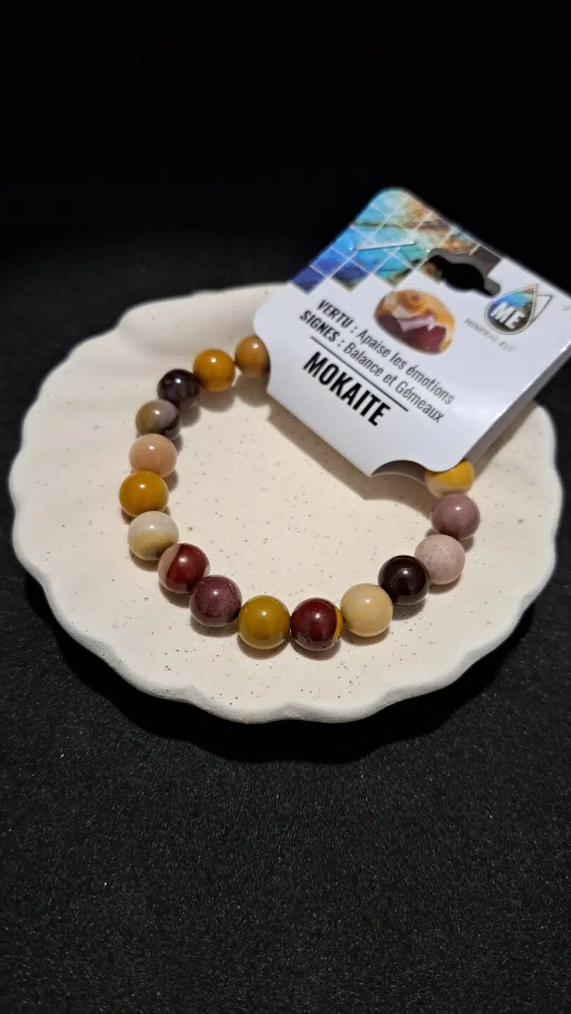 Avec son mélange de couleurs, le Jaspe 'mokaïte' offre une grande fluidité du corps et de l'esprit. Aide à harmoniser les différentes parties du moi dans notre cerveau et incite à lâcher prise sur nos blocages. Idéal pour gérer les excès émotionnels et canaliser les émotions trop fortes, peut aider à solutionner les situations conflictuelles et à les résoudre. Il encourage la réconciliation et le pardon en passant sur toutes formes de rancœurs.