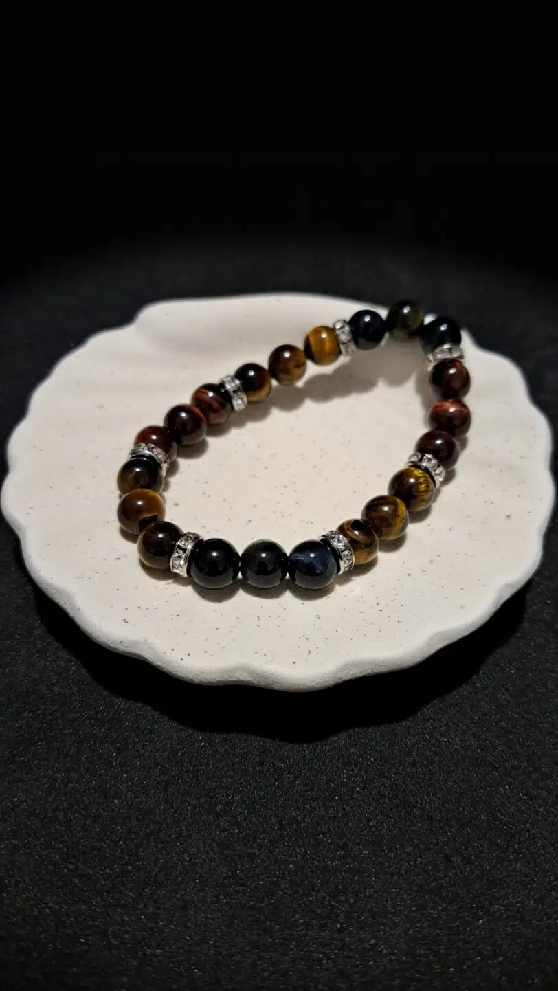 La plus célèbre des pierres de protection, l’Œil de tigre est un véritable miroir renvoyant à sa source toute négativité (y compris les sortilèges et les malédictions). Son énergie Yang apporte un rayonnement personnel plein de confiance, agissant comme un bouclier répulsif. Pierre chaleureuse liée au chakra racine et solaire, ancre en apportant énergie et créativité. Souvent déconseillée aux personnes colériques.