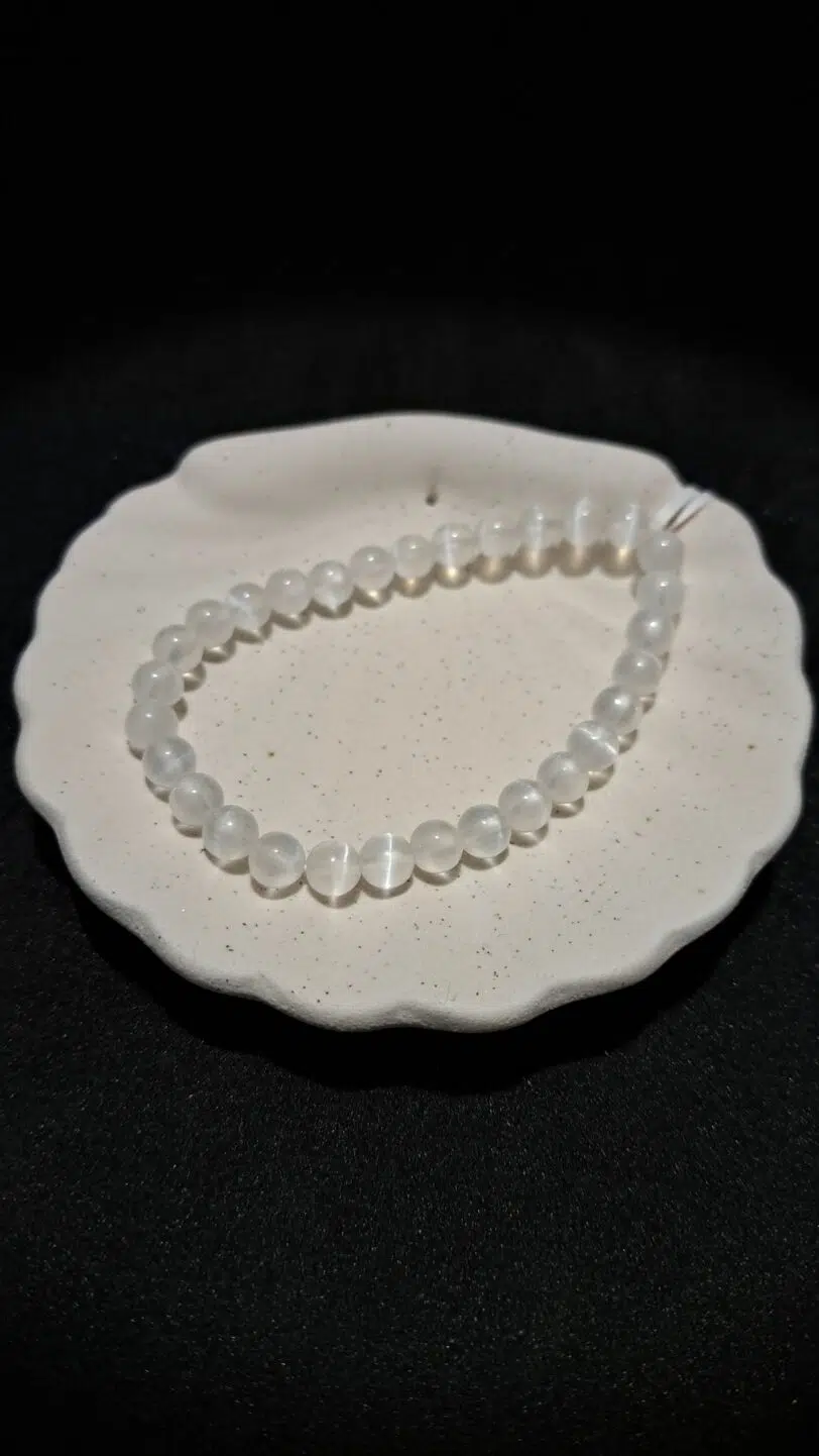 D'une énergie à la fois lunaire et céleste, la Sélénite tient son nom de la déesse Séléné. Purificatrice pour l'environnement comme pour l'aura, apporte une élévation vibratoire douce mais puissante, chassant les énergies négatives en attirant les vibrations positives (comme la présence des anges). Instaurer une sérénité en soi, propice à l'élévation de l'esprit et à la méditation.