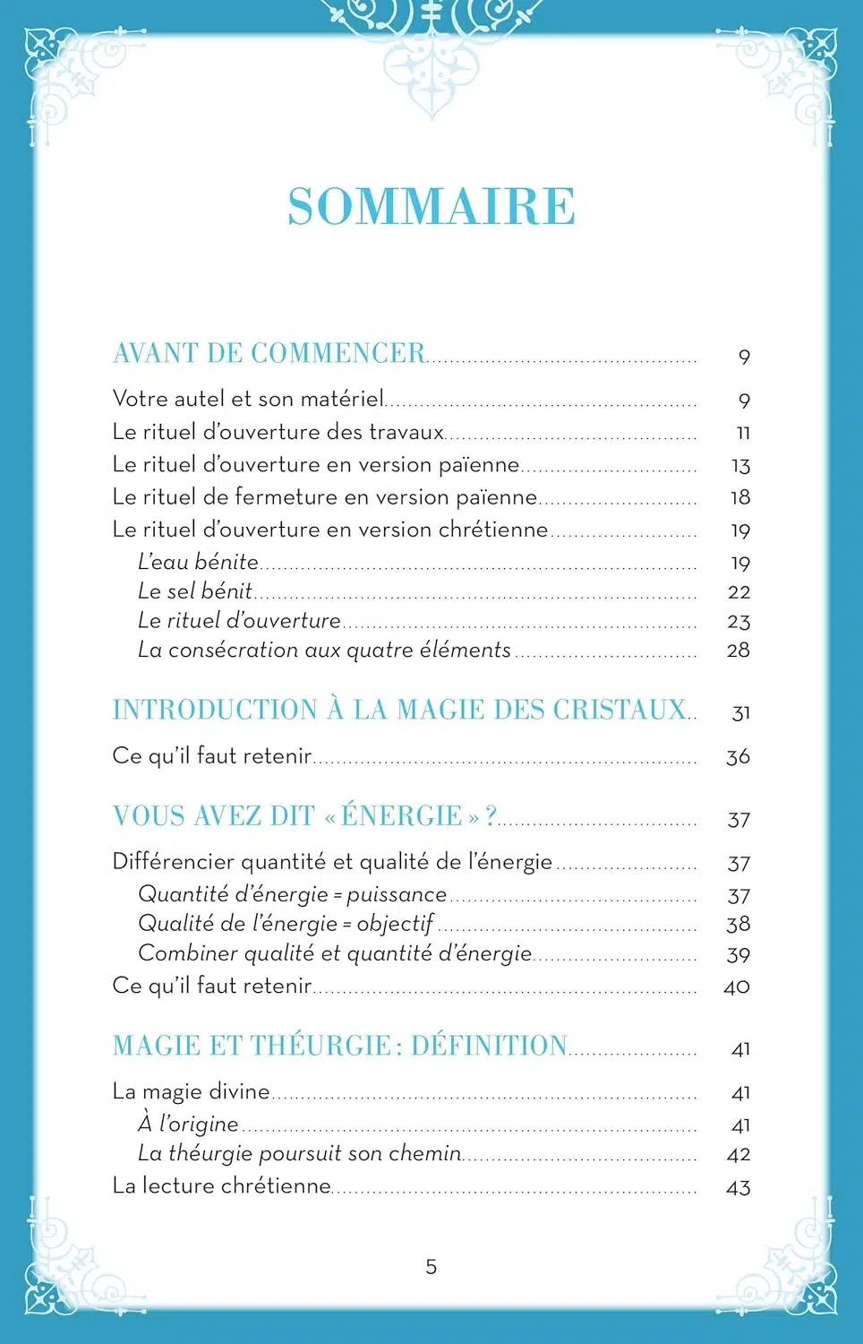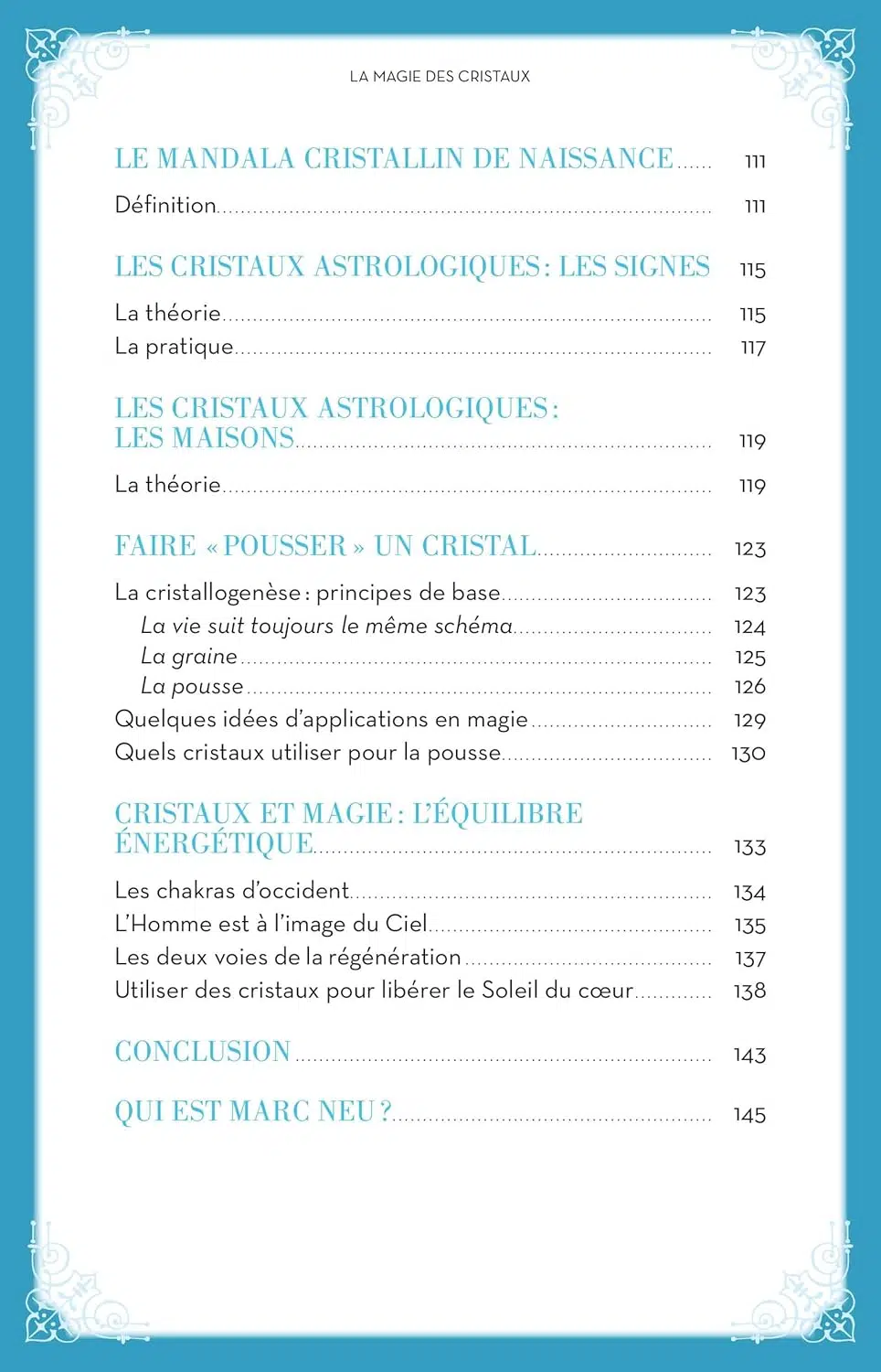Dans ce carnet richement illustré, vous découvrirez comment consacrer votre espace dédié à la magie, ainsi que le matériel nécessaire à chaque pratique. Puis, au fil des pages, vous serez initié aux techniques de fabrication des cristaux pour les transformer en amulettes de chance ou en talismans de prospérité. En les chargeant de votre énergie et de vos rêves, ils gagneront en force et vous seront dévoués pour réaliser vos objectifs.