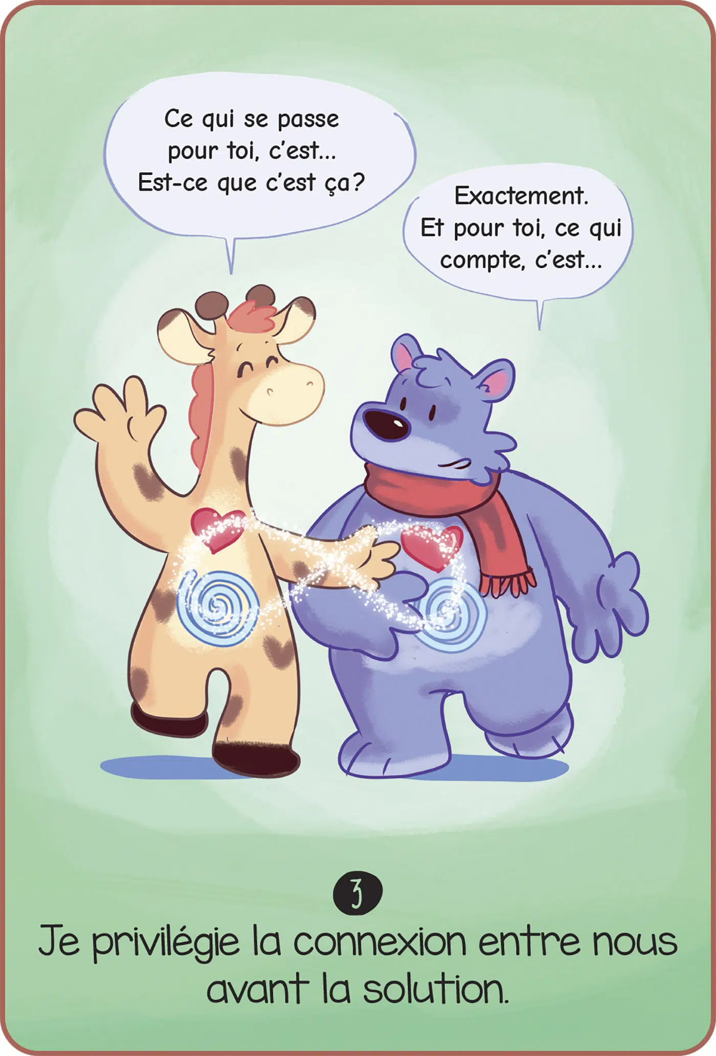 L’apprentie girafe, en s’appuyant sur les enseignements de Marshall Rosenberg, le créateur de la communication non violente, se propose de nous offrir des outils visuels et ludiques pour naviguer dans les tempêtes relationnelles. La communication pacifiante est un art du dialogue, avec soi et les autres, qui nous invite à passer du rapport de force à la rencontre, de la réactivité à la présence, du jugement à la compréhension.