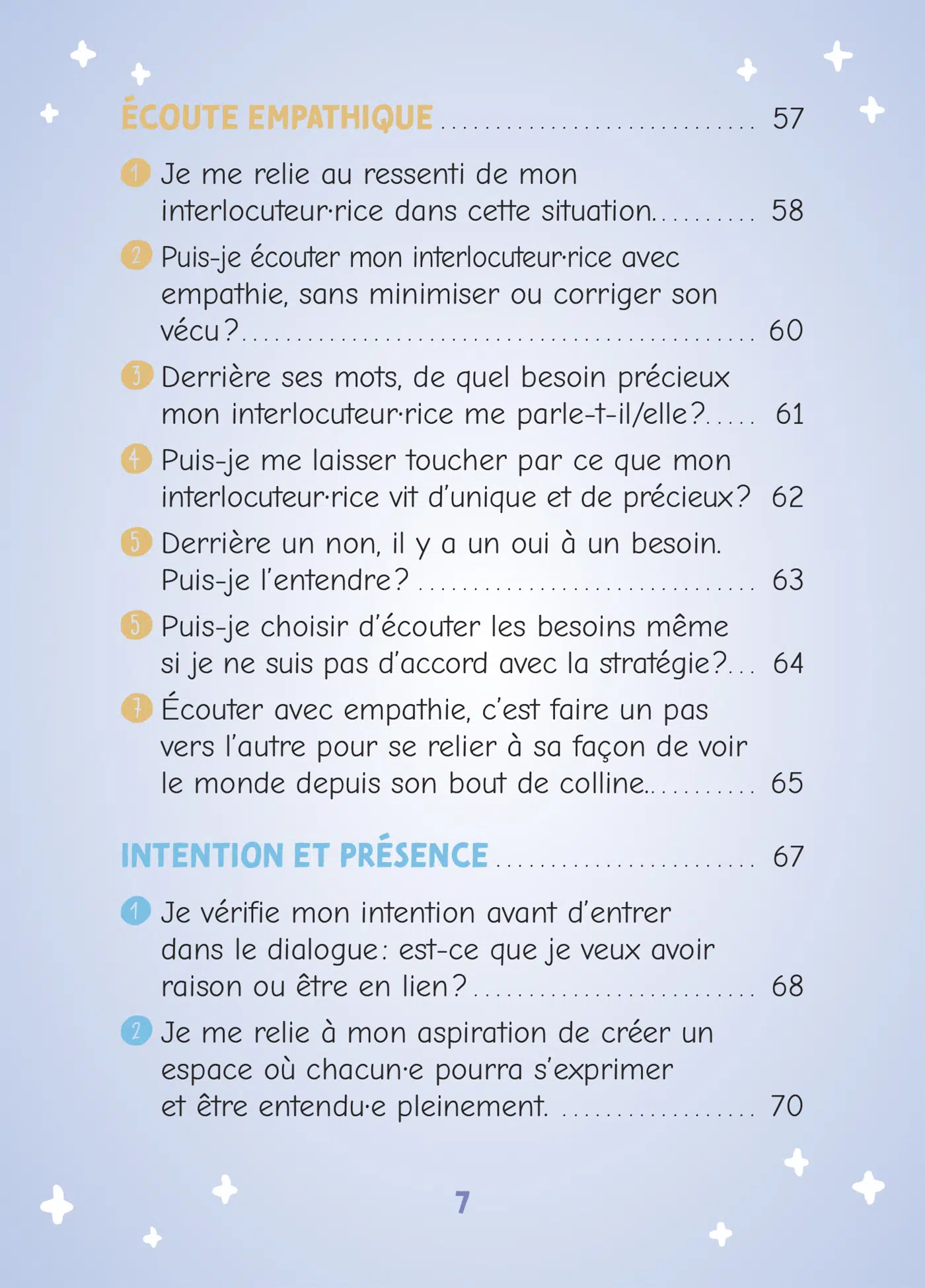Vous trouverez dans ce coffret 42 cartes, richement illustrées. Que vous soyez en quête d’inspiration, de clarté ou de soutien dans une conversation délicate, ces cartes et leur livret explicatif vous aideront à cultiver une présence bienveillante, à nourrir le dialogue et à vous reconnecter à ce qui compte profondément pour vous.