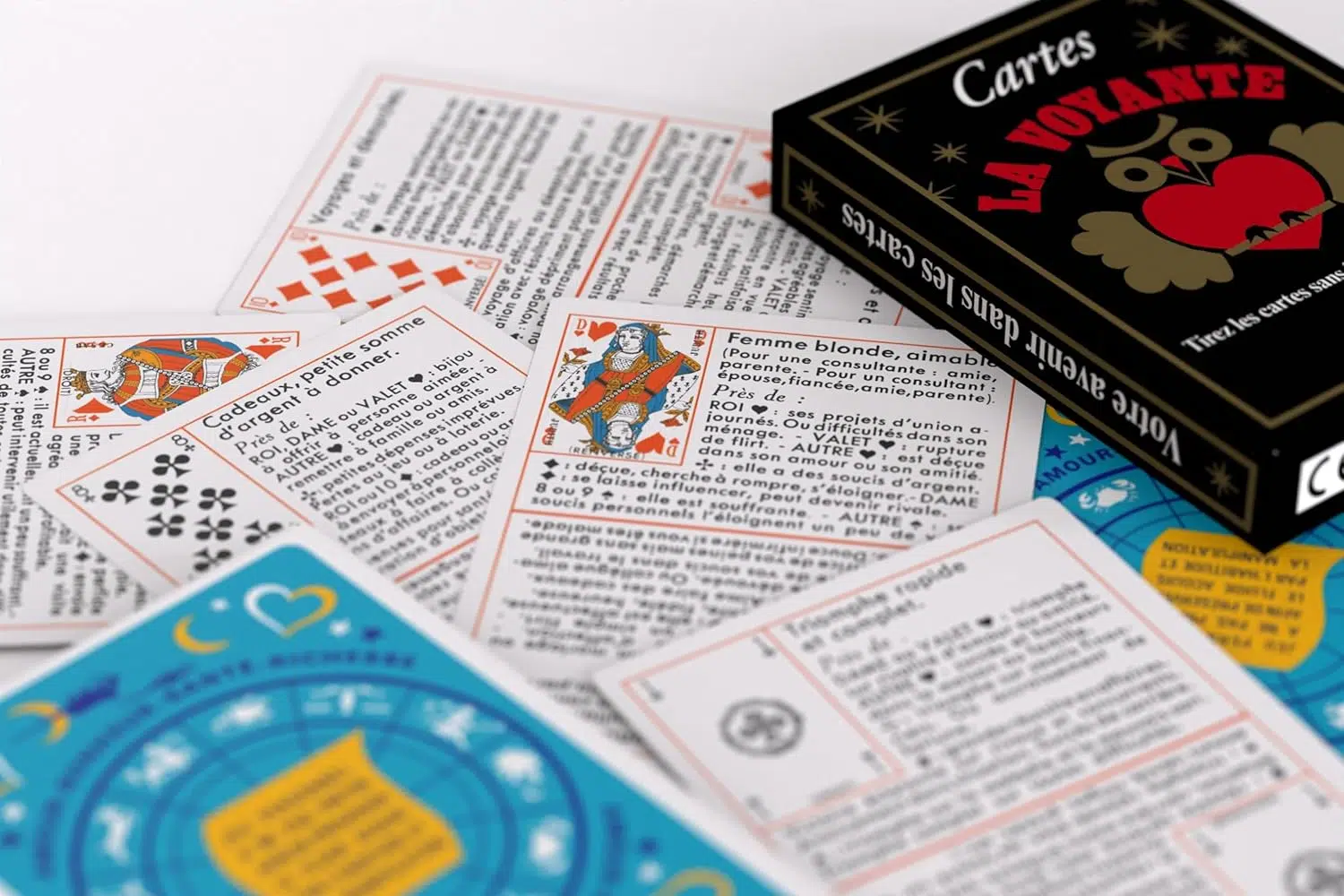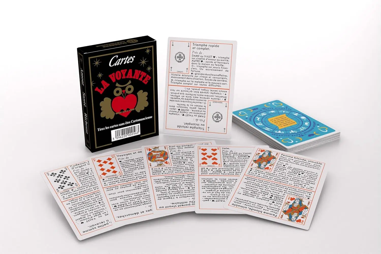 La Voyante est donc un jeu de cartes idéal pour tous ceux et toutes celles qui souhaitent trouver des réponses à leurs interrogations : Amour, Santé, Richesses. En effet, il n'est désormais plus besoin d'être une Cartomancienne pour lire l'avenir dans les cartes.