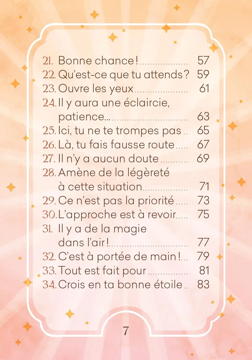 Véritable allié, cet oracle divinatoire te prodiguera des conseils éclairants à chaque fois que tu en ressentiras le besoin. Écoute ton cœur et laisse la magie de l'oracle Signes de lumière éclairer ta vie !