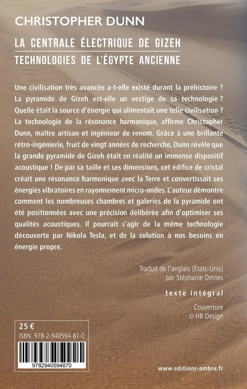 Une civilisation très avancée a-t-elle existé durant la préhistoire ? La pyramide de Gizeh est-elle un vestige de sa technologie ? Et quelle était la source d'énergie qui alimentait une telle civilisation ? La technologie de la résonance harmonique, affirme Christopher Dunn, maître artisan et ingénieur de renom. Grâce à une brillante rétro-ingénierie, fruit de vingt années de recherche, Dunn révèle que la Grande Pyramide de Gizeh était en réalité un immense dispositif acoustique ! De par sa taille et ses dimensions, cet édifice de cristal créait une résonance harmonique avec la Terre et convertissait ses énergies vibratoires en rayonnement micro-ondes. L'auteur démontre comment les nombreuses chambres et galeries de la pyramide ont été positionnées avec une précision délibérée afin d'optimiser ses qualités acoustiques. Il pourrait s'agir de la même technologie découverte par Nikola Tesla, et de la solution à nos besoins en énergie propre.