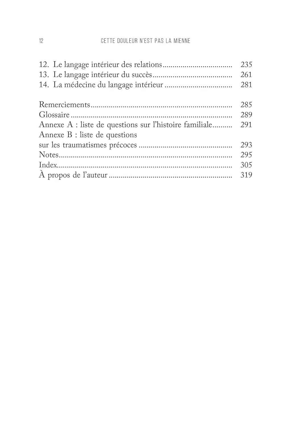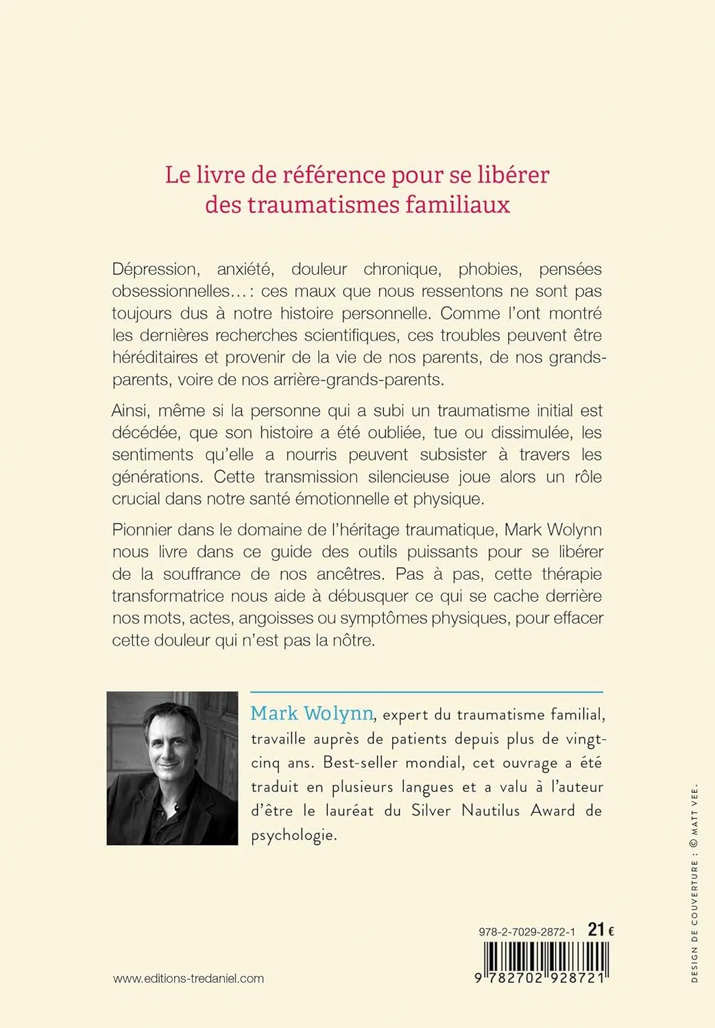 Pionnier dans le domaine de l'héritage traumatique, Mark Wolynn nous livre dans ce guide des outils puissants pour se libérer de la souffrance de nos ancêtres. Pas à pas, cette thérapie transformatrice nous aide à débusquer ce qui se cache derrière nos mots, actes, angoisses ou symptômes physiques, pour effacer cette douleur qui n'est pas la nôtre.