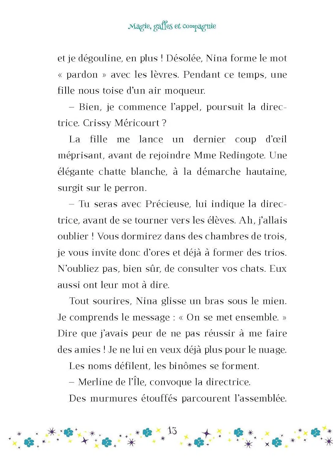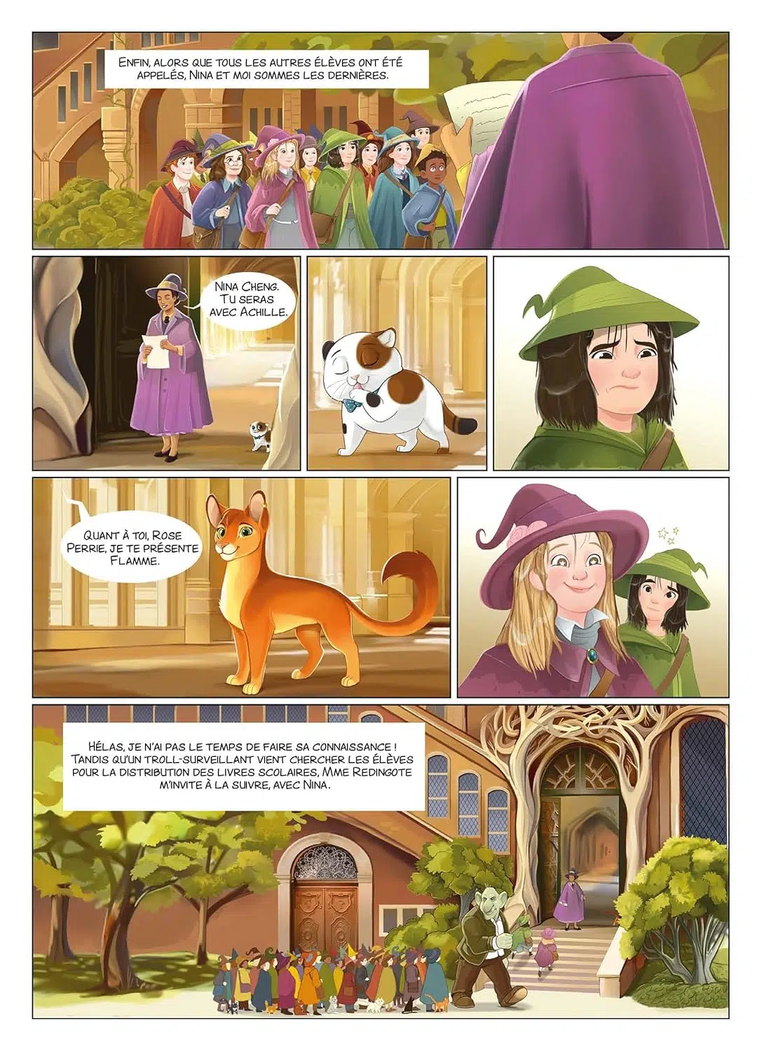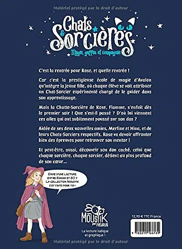 Rose est tout excitée : à peine arrivée à l'école de magie d'Avalon, elle s'est déjà fait deux amies, Nina et Merline. Mieux encore : dès leur premier jour, la directrice attribue à chaque élève un Chat-Sorcier expérimenté qui leur servira de mentor. Et la Chatte-Sorcière de Rose, Flamme, est extra ! Malheureusement, cette dernière s'enfuit le premier soir. Rose est inconsolable, mais aussi bien déterminée à la retrouver pour comprendre ce qui s'est passé. Aidée de Nina et Merline, et de leurs Chats-Sorciers, Rose va devoir affronter bien des épreuves, et peut-être, aussi, découvrir son don caché, celui que chaque sorcier et sorcière détient au plus profond de lui... Entre roman et BD, cette nouvelle série Moustik devrait plaire à tous les petits lecteurs en herbe : ceux qui aiment déjà lire, et ceux qui n'ont plus qu'un pas à faire pour sauter de la BD au roman !