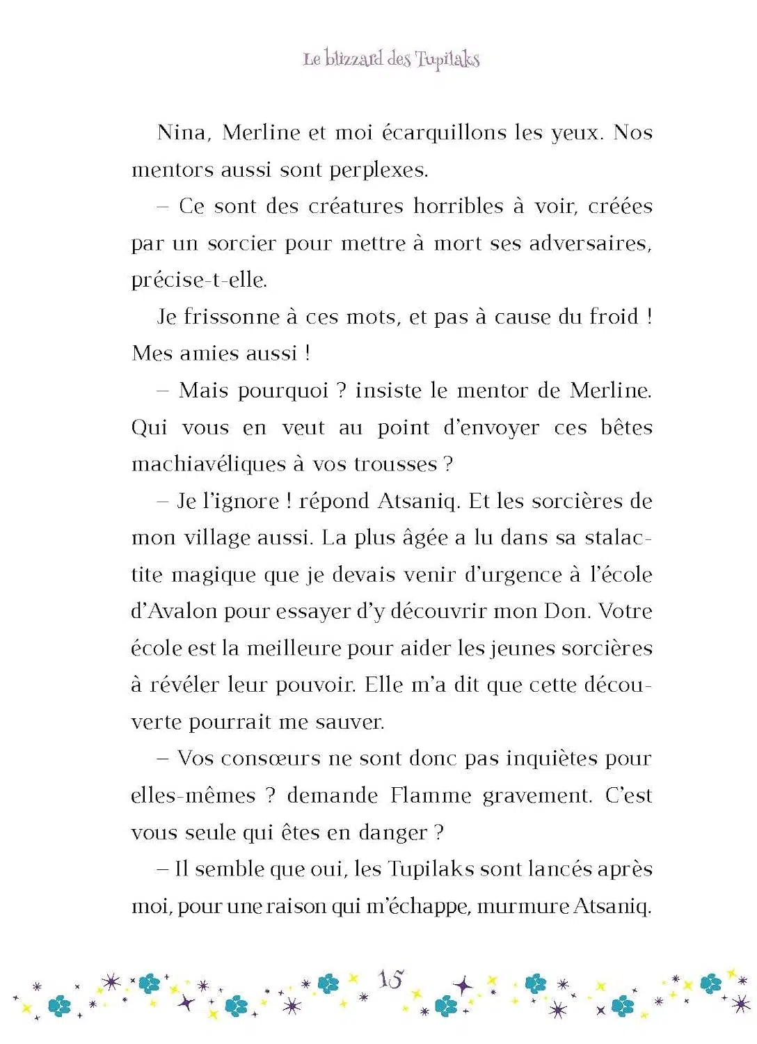 Une nouvelle année commence pour Rose, Merline et Nina. Alors que l’automne s’installe, une gigantesque tempête de neige s’abat sur Avalon ! Avec, arrive une nouvelle élève : Atsaniq, jeune sorcière originaire d’un pays nordique. Elle veut apprendre à maîtriser son Don pour réussir à protéger son village des Tupilaks, des esprits malfaisants déterminés à ravager les siens. Rose, Merline et Nina et leurs Chats-Sorciers pourront-ils l’aider à mener à bien sa mission ?