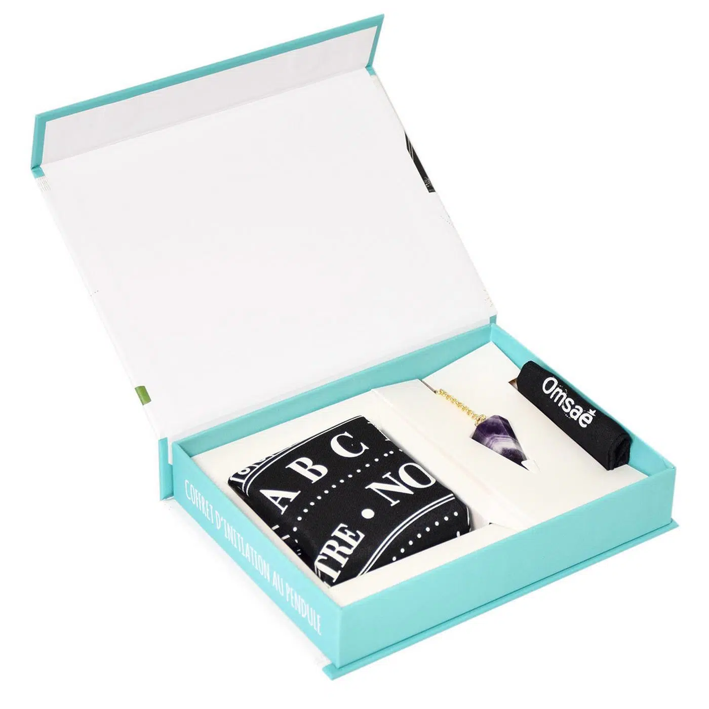 La radiesthésie ou sensibilité aux rayonnements, est une technique basée sur le ressenti des radiations qui émanent de notre corps ou de la Terre pour nous permettre de faire émerger des réponses cachées. Ce coffret se compose d'accessoires indispensables pour les séances de divination. Un pendule hexagonal en améthyste : prolongement de l'âme, le pendule amplifie les ondes vibratoires émises par le corps et permet de révéler les réponses cachées dans notre subconscient. Grâce aux vibrations violettes apaisantes de sa pierre naturelle d'améthyste, le pendule viendra renforcer l'intuition. Une nappe de divination : avant de débuter la séance, créer son autel dans un espace calme et apaisant et installer la nappe en son centre. Chaque lettre et chaque chiffre y est représenté pour permettre au pendule d'indiquer une réponse précise. Quelle que soit la question, ouverte ou fermée, le pendule pourra y répondre…. Un pochon de transport : glisser le pendule à l’intérieur pour l’emporter facilement avec soi.
