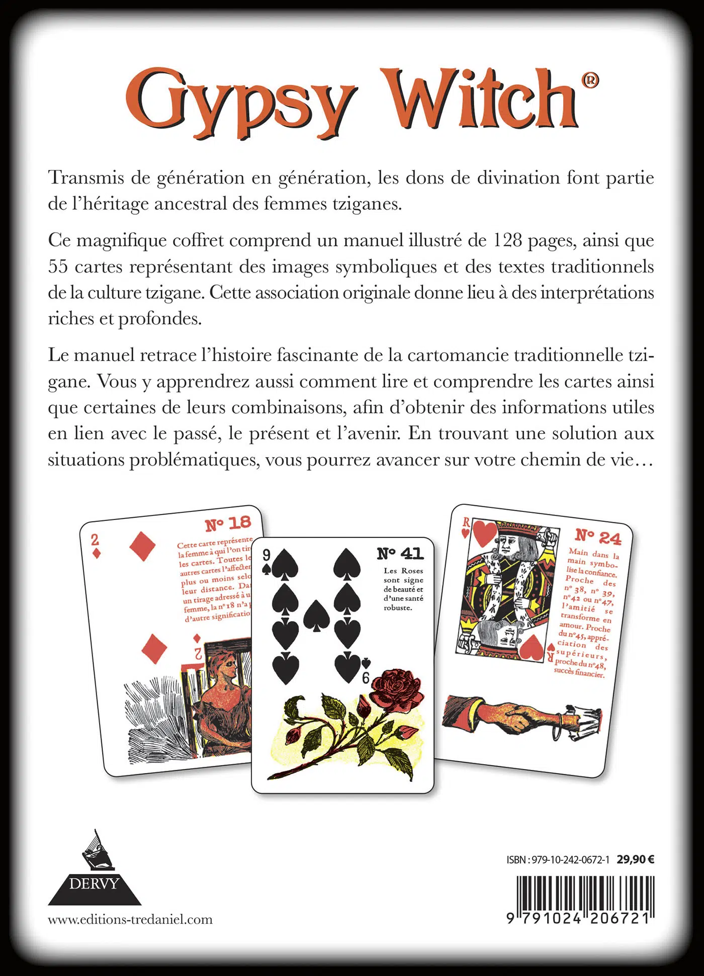 Ce coffret (longtemps édité en anglais, et enfin traduit et adapté en français) comprend un manuel illustré de 130 pages ainsi que 55 cartes représentant des images symboliques et des textes traditionnels prétendus de la culture tzigane. Une association originale qui donne lieu à des interprétations inédites.