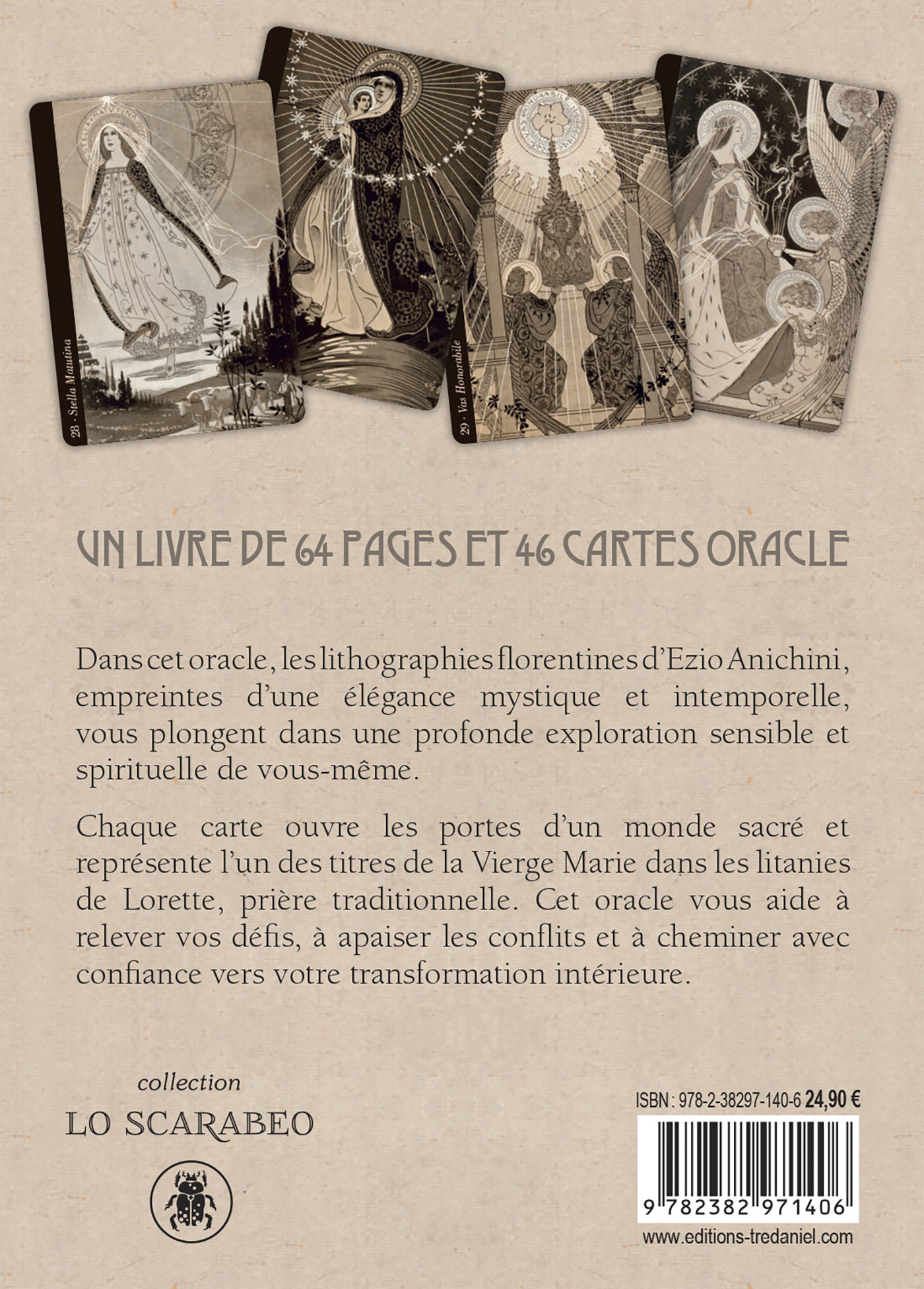 Chaque carte ouvre les portes d’un monde sacré et représente l’un des titres de la Vierge Marie dans les litanies de Lorette, prière traditionnelle. Cet oracle vous aide à relever vos défis, à apaiser les conflits et à cheminer avec confiance vers votre transformation intérieure.