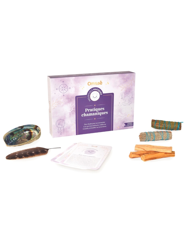 Découvrez le coffret Omsaé Rituels d'initiation aux pratiques chamaniques pour se connecter à ce qui nous entoure, visible ou invisible et éveiller sa conscience. Ce coffret est composé d'un bâton de sauge blanche, d'un bâton de cèdre, de 3 bâtons de palo santo, d'une coquille d'ormeau, d'une plume et de 4 cartes rituels. Le chamanisme est avant tout une invitation au voyage intérieur. Tradition spirituelle ancestrale héritée des peuples amérindiens, le chamanisme est basé sur une connexion profonde avec la nature et la conscience. Les croyances chamaniques reposent sur le fait que tout ce qui vit autour de nous, les plantes, les animaux et les minéraux possède un esprit avec lequel il nous est possible de rentrer en contact. Cette connexion au monde aide chacun à trouver du sens, à s'éveiller, à développer la connaissance de soi-même et à apporter des réponses à ses questions. Le chamanisme est fait de nombreux rituels qu'il est possible d'intégrer au quotidien pour ancrer les intentions. Omsaé a développé ce coffret complet pour rentrer en connexion avec le monde qui nous entoure. Les accessoires qui le composent et les cartes qui sont glissées à l'intérieur permettent de réaliser les rituels, d'accompagner dans la pratique et de s'initier au chamanisme.