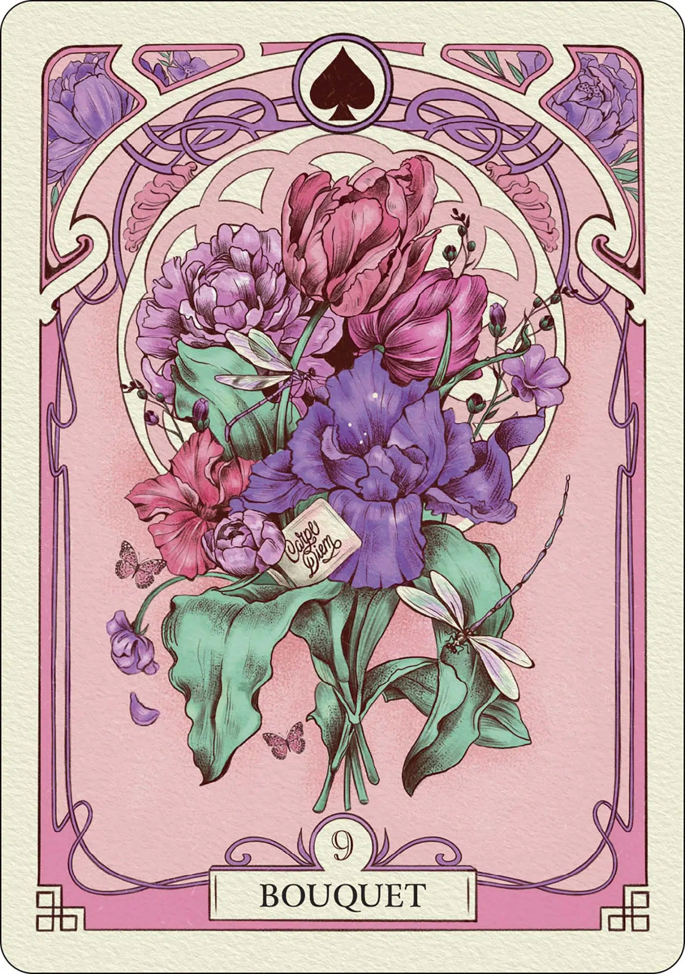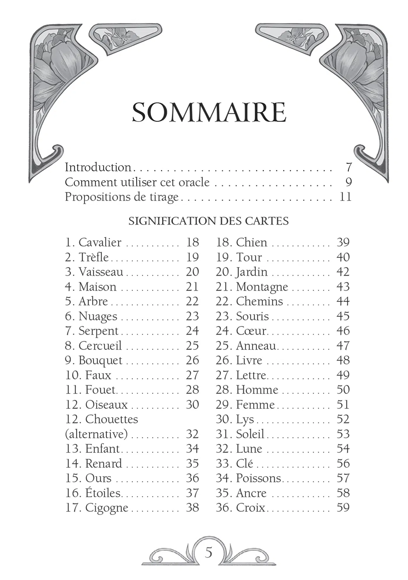 Tout en reprenant les symboles du Petit Lenormand, chaque carte a son propre cadre spécifique avec des références florales qui apporteront une nouvelle approche plus romantique et poétique aux cartes traditionnelles.