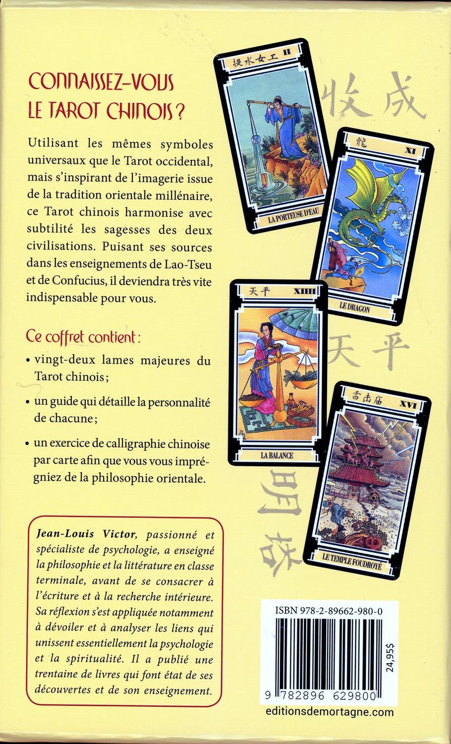 Utilisant les mêmes symboles universaux que le Tarot occidental mais s’inspirant de l’imagerie issue de la tradition orientale millénaire, le Tarot chinois harmonise avec subtilité les sagesses des deux civilisations. Puisant ses sources dans les enseignements de Lao-Tseu et de Confucius, il deviendra très vite indispensable pour vous.