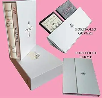 Ce coffret propose son ouvrage complet dans une superbe version reliées, ainsi qu'une réédition des deux versions originales de ce jeu, avec un souci du détail incroyable. Respect des tailles et marges de l'époque, du grammage du papier, de l'aspect des couleurs... Le tout dans un coffret prestige aux proportions du nombre d'or, contenant les deux jeux de 22 cartes, autant en tant qu'objet de collection que de d'outil pratique.