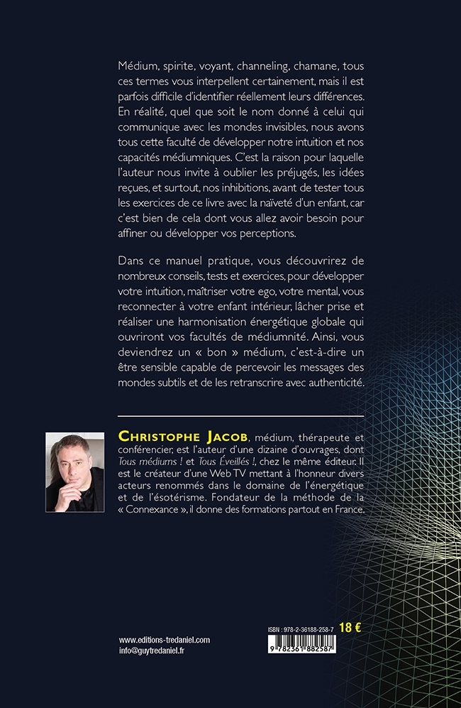 En réalité, quel que soit le nom donné à celui qui communique avec les mondes invisibles, nous avons tous cette faculté de développer notre intuition et nos capacités médiumniques. C'est la raison pour laquelle l'auteur nous invite à oublier les préjugés, les idées reçues, et surtout, nos inhibitions, avant de tester tous les exercices de ce livre avec la naïveté d'un enfant, car c'est bien de cela dont vous allez avoir besoin pour affiner ou développer vos perceptions.