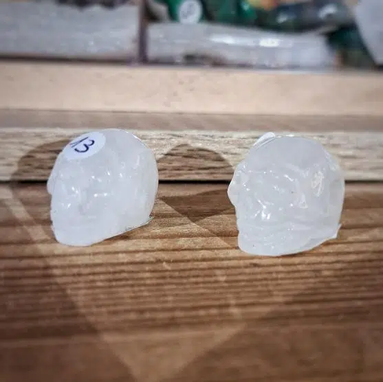 Petit "crâne de cristal" de 2,5cm, taillé dans du cristal de roche naturel.