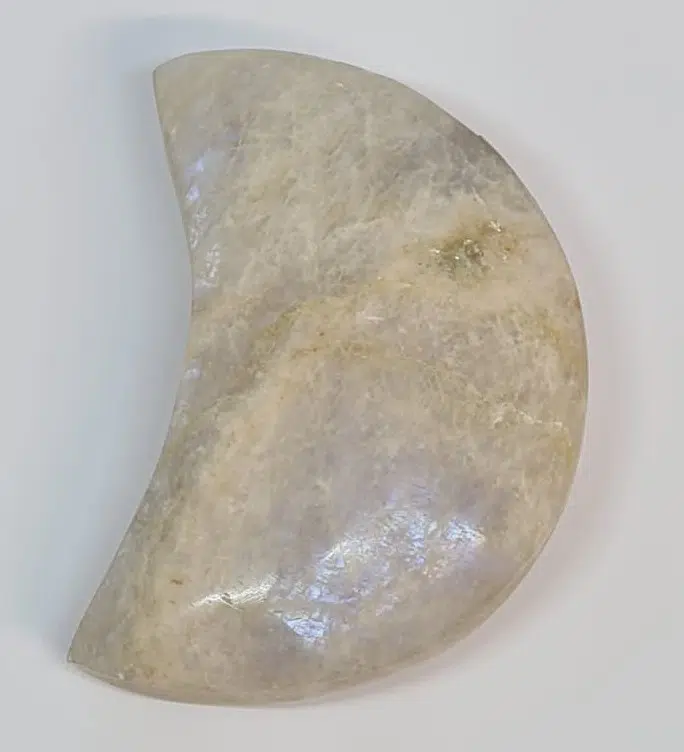 Belle pierre de lune (arc-en-ciel) beige, taillée en forme de croissant de lune de 60mm (67gr).