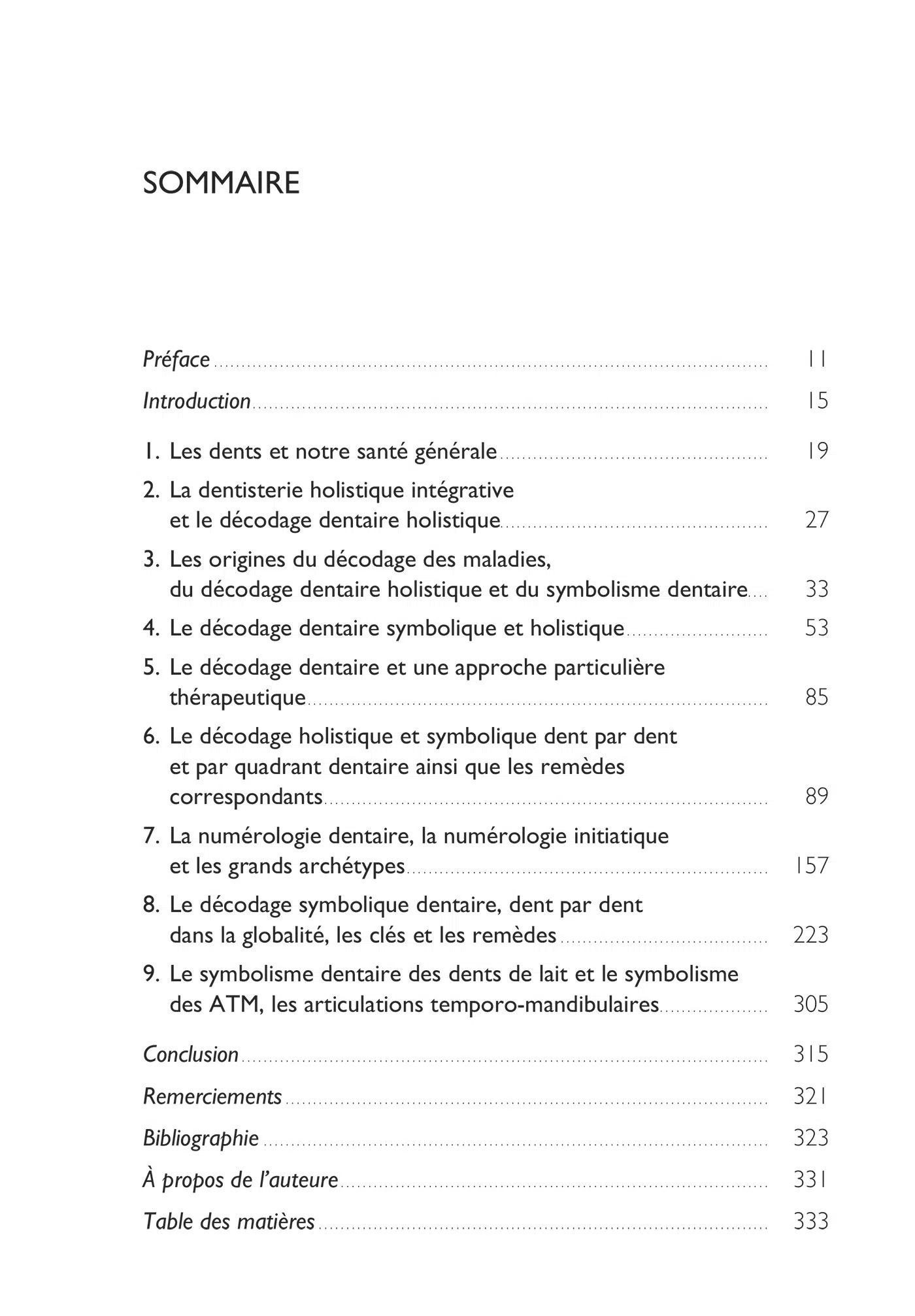 Résolument pratique, ce livre propose pour chaque dent et chaque trouble associé des protocoles thérapeutiques concrets – Fleurs de Bach, gemmothérapie, aromathérapie, élixirs sonores, hypnose… – visant à libérer les charges émotionnelles mises en lumière par le décodage dentaire.