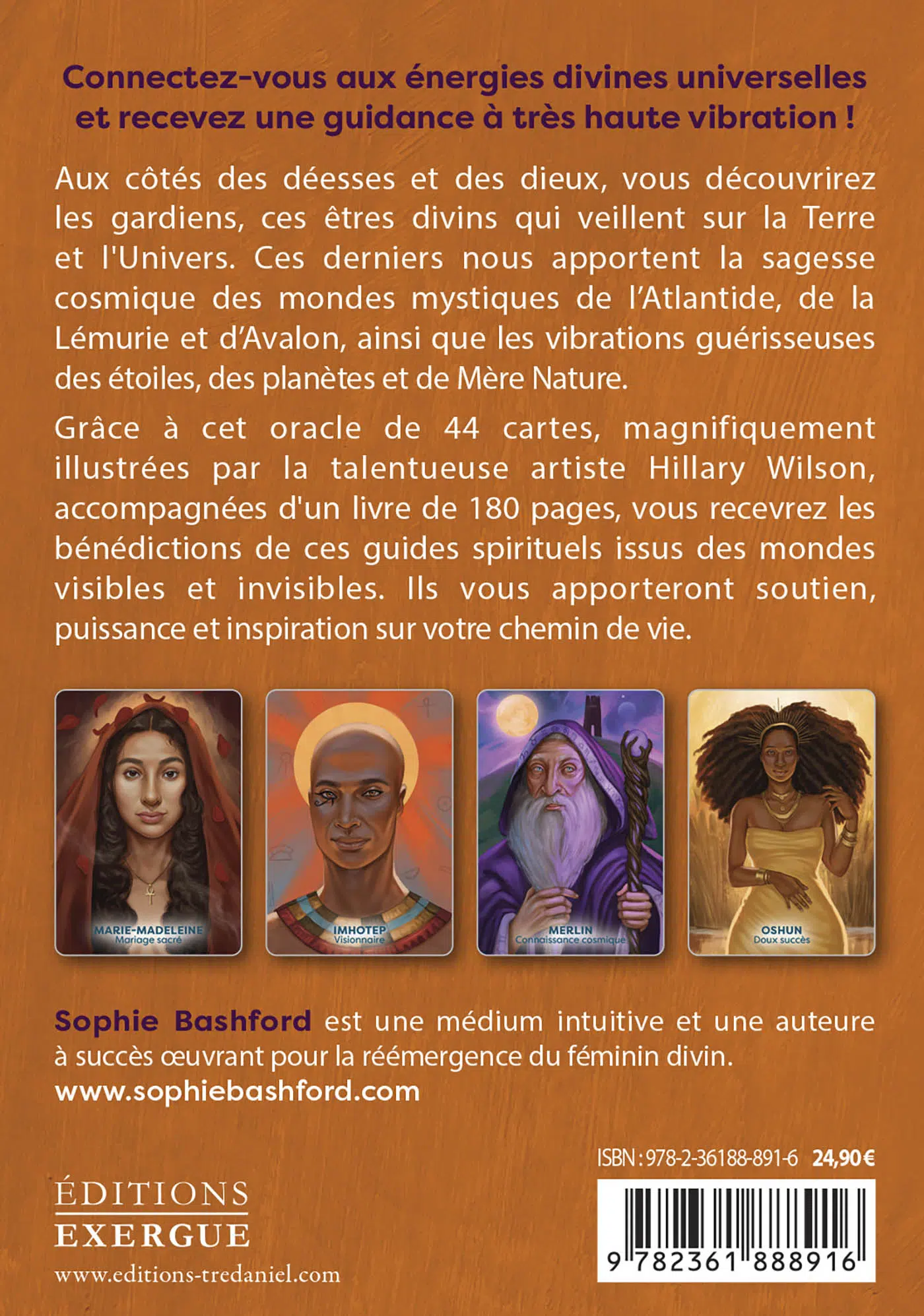 Aux côtés des déesses et des dieux, vous découvrirez les gardiens, ces êtres divins qui veillent sur la Terre et l'univers. Ils nous apportent la sagesse cosmique des mondes mystiques de l’Atlantide, de la Lémurie et d’Avalon, ainsi que les vibrations guérisseuse des étoiles, des planètes et de Mère Nature.