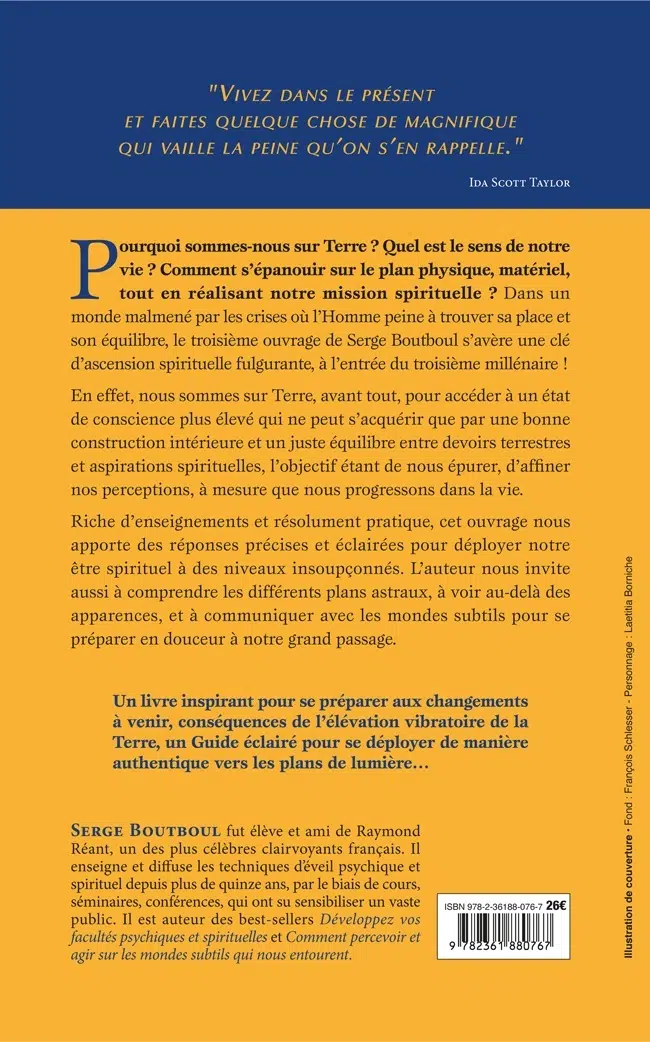 Dans ce dernier volet de cette trilogie initiatique (pour lequel il est conseillé d’avoir intégré les deux précédents volumes : "Développez vos facultés psychiques et spirituelles" puis "Comment percevoir et agir sur les mondes subtils qui nous entourent"), l’auteur centre cet apprentissage sur vous-même. Expliquant l’importance de votre arrivée sur terre, l’acceptation de votre incarnation, faire un bilan sur votre plan spirituel, découvrir et réaliser votre mission de vie, avoir une spiritualité authentique et agir sur vos points faibles, se structurer intérieurement, améliorer votre vue et celle de vos proches, l’impact de l’évolution vibratoire de notre monde, etc. Tout un panel complet permettant d’incarner pleinement qui vous êtes et vos nombreux potentiels, à l’issue de cet enseignement progressif.