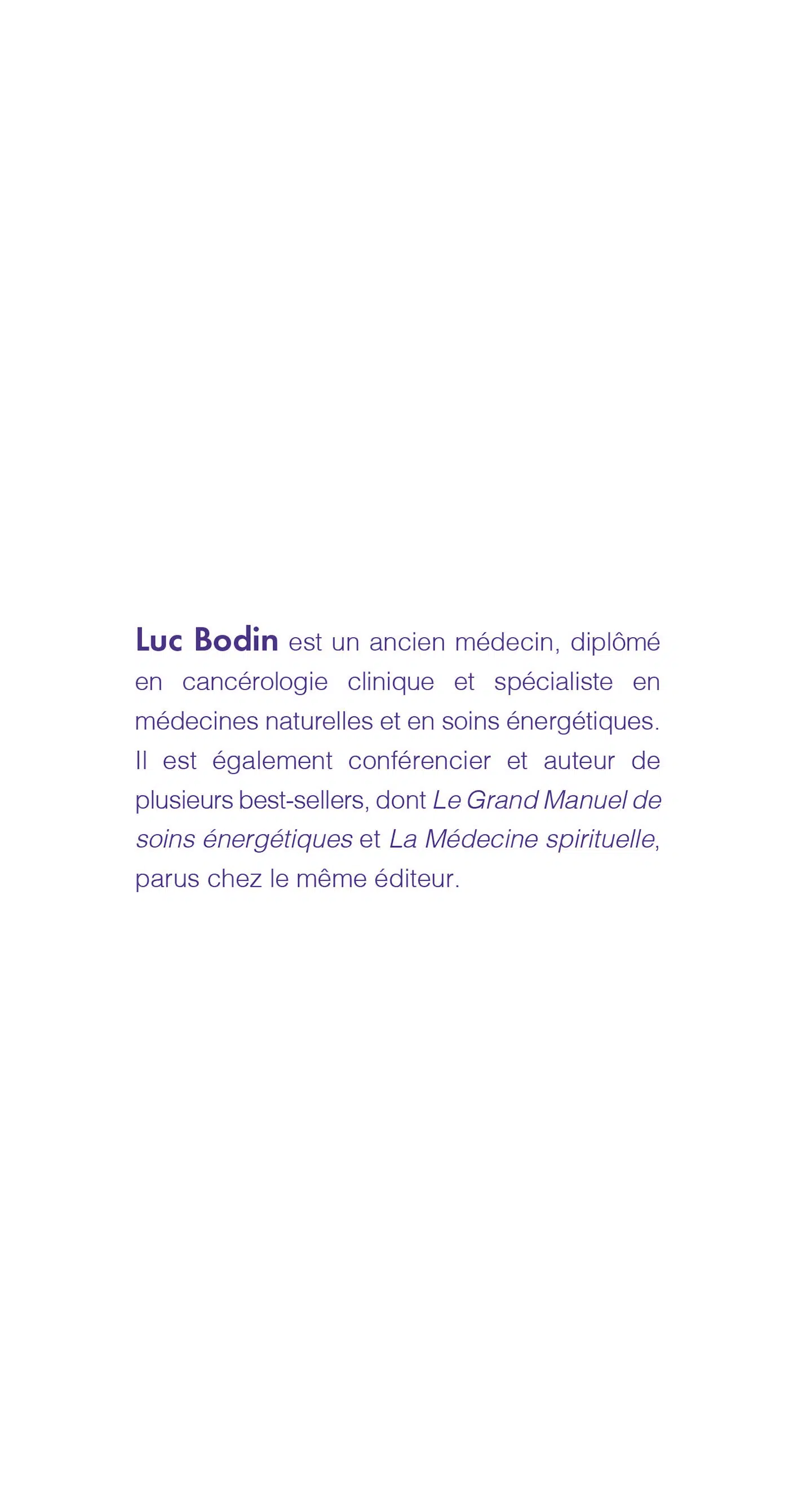 Luc Bodin est un ancien médecin diplômé en cancérologie clinique mais aussi spécialiste en médecines naturelles et en soins énergétiques. Son parcours riche et complémentaire l’a vite mené à publier de très nombreux ouvrages, sur différents thèmes, devenus pour beaucoup des bestsellers en la matière.