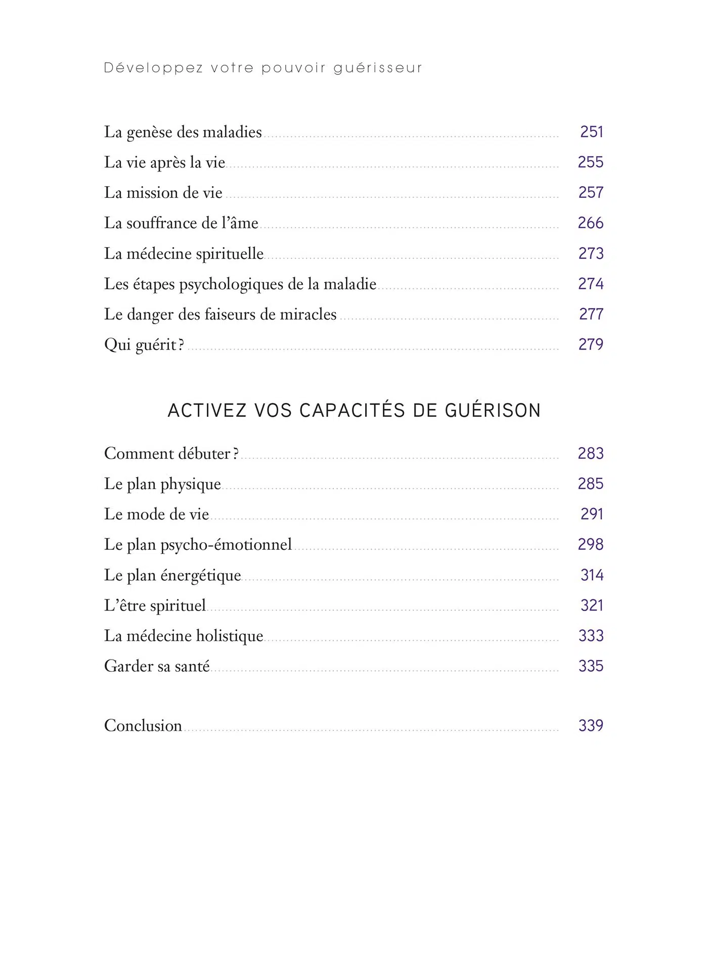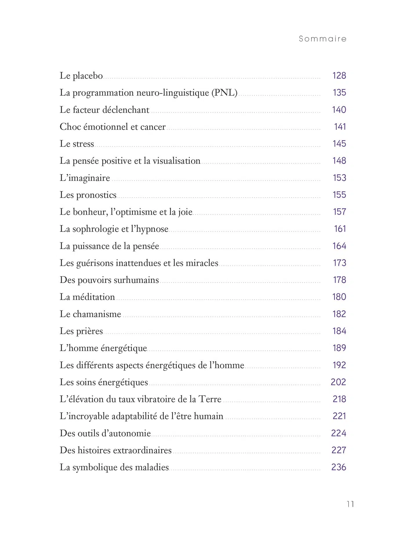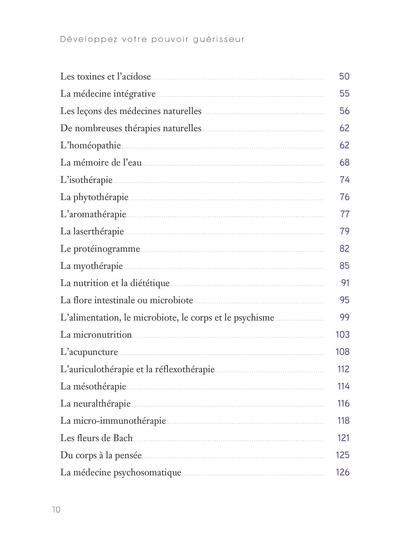 Comme à son habitude, l’auteur propose ici tout un panel de thérapies naturelles, parallèles, alternatives et spirituelles. Abordant tant l’homéopathie, que l’acupuncture, que la sophrologie, l’aromathérapie, la symbolique des maladies, l’éveil spirituel, et bien d’autres. Vous comprendrez ici les liens entre le physique, le psychique, l’émotionnel, l’énergétique et le spirituel. Une quête d’harmonie et d’équilibre que vous apprendrez page après page, grâce aux multiples techniques développées.