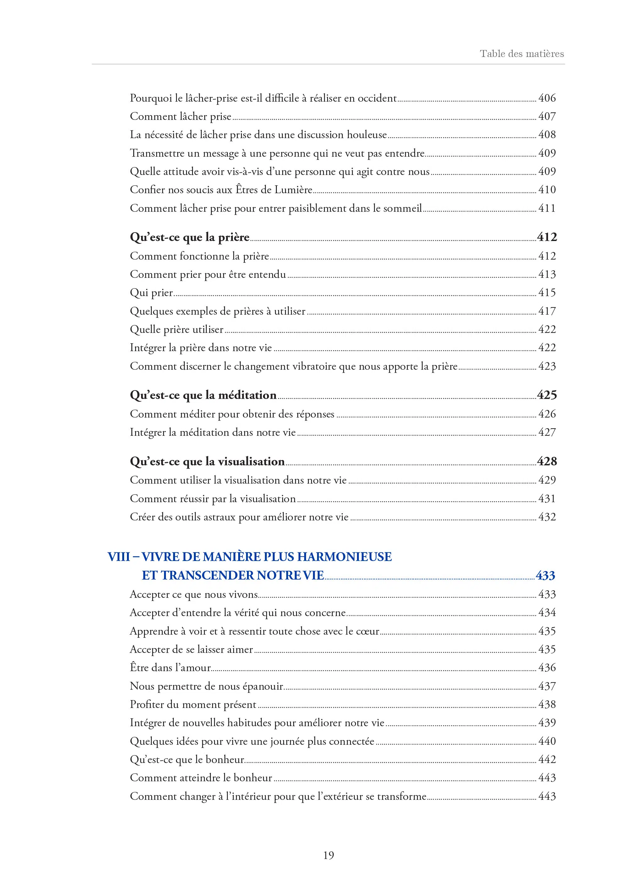 Après de nombreux enseignements sur les plans énergétiques, la purification et la protection, l’auteur propose dans ce nouvel ouvrage très conséquent (de 652 pages) de véritables clés initiatique, poussant chacun à se relier à la part la plus subtile et la plus élevée de lui-même. Prise de conscience de qui nous somme, d’où nous venions avant notre incarnation, pourquoi et comment sommes-nous sur terre, divers stades d’éveil spirituels (pourquoi et comment), le travail libératoire de nos propres obstacles, des outils de compréhension pour l’évolution, se déployer de manière équilibrée, les pratiques à intégrer, vivre l’harmonie et transcender notre vie, aider les autres, amplifier notre connexion aux plans de lumière, etc. Bref, un tour d’horizon complet pour parfaire un cheminement personne, digne d’une véritable alchimie intérieure.